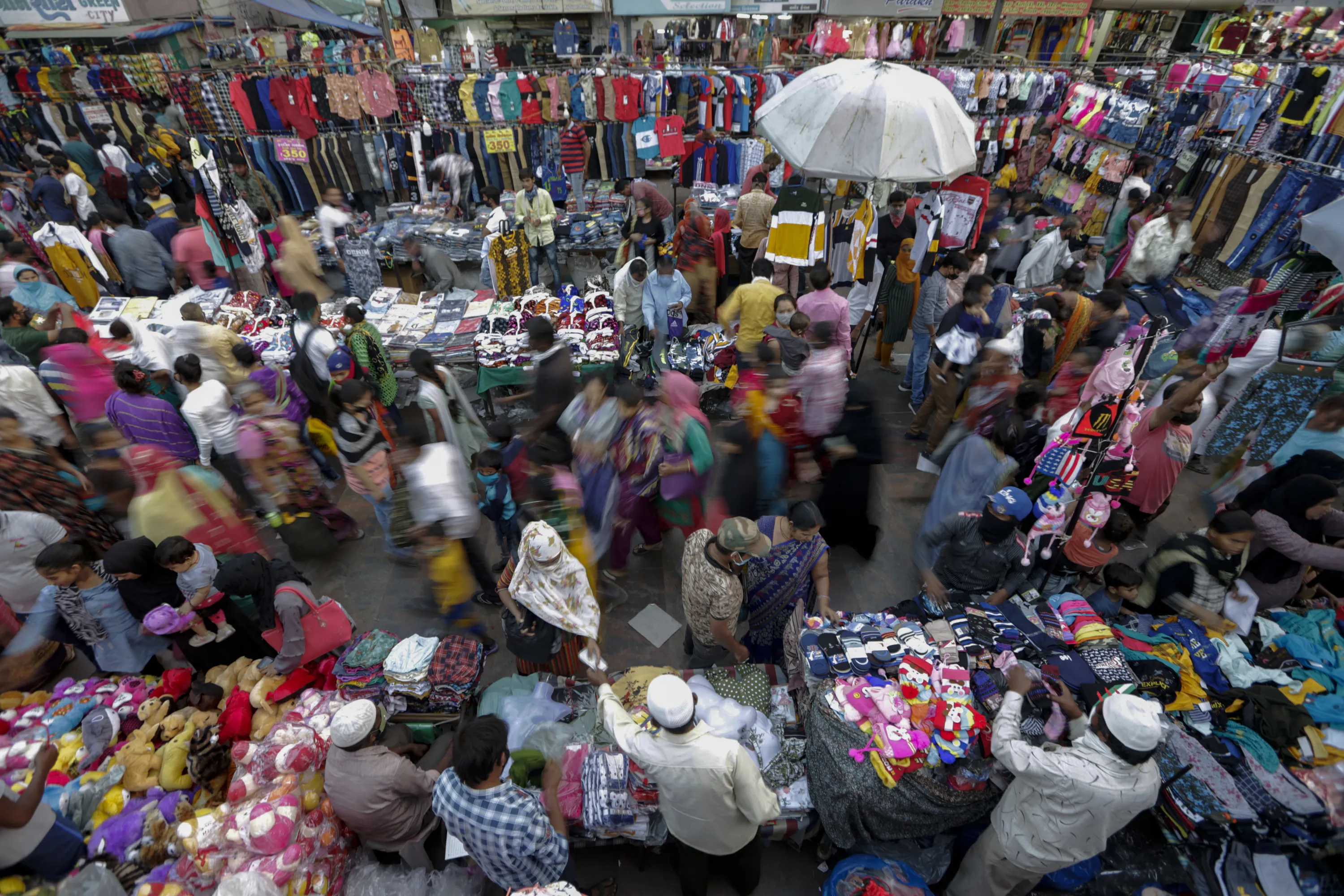 Indians throng a market for shopping ahead of Hindu festival Diwali in Ahmedabad, India, Monday, November 9, 2020. India's tally of coronavirus cases is currently the second largest in the world behind the United States. The government warns that the situation can worsen due to people crowding markets for festival shopping. (Photo by Ajit Solanki/AP Photo)