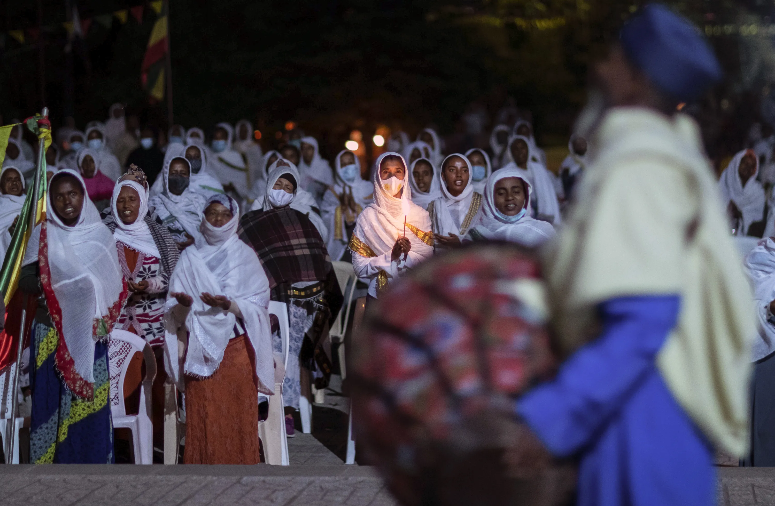 Ethiopian Orthodox Christians light candles and pray for peace during a church service at the Medhane Alem Cathedral in the Bole Medhanealem area of the capital Addis Ababa, Ethiopia Thursday, November 5, 2020. Ethiopia's powerful Tigray region asserts that fighter jets have bombed locations around its capital, Mekele, aiming to force the region “into submission”, while Ethiopia's army says it has been forced into an “unexpected and aimless war”. (Photo by Mulugeta Ayene/AP Photo)