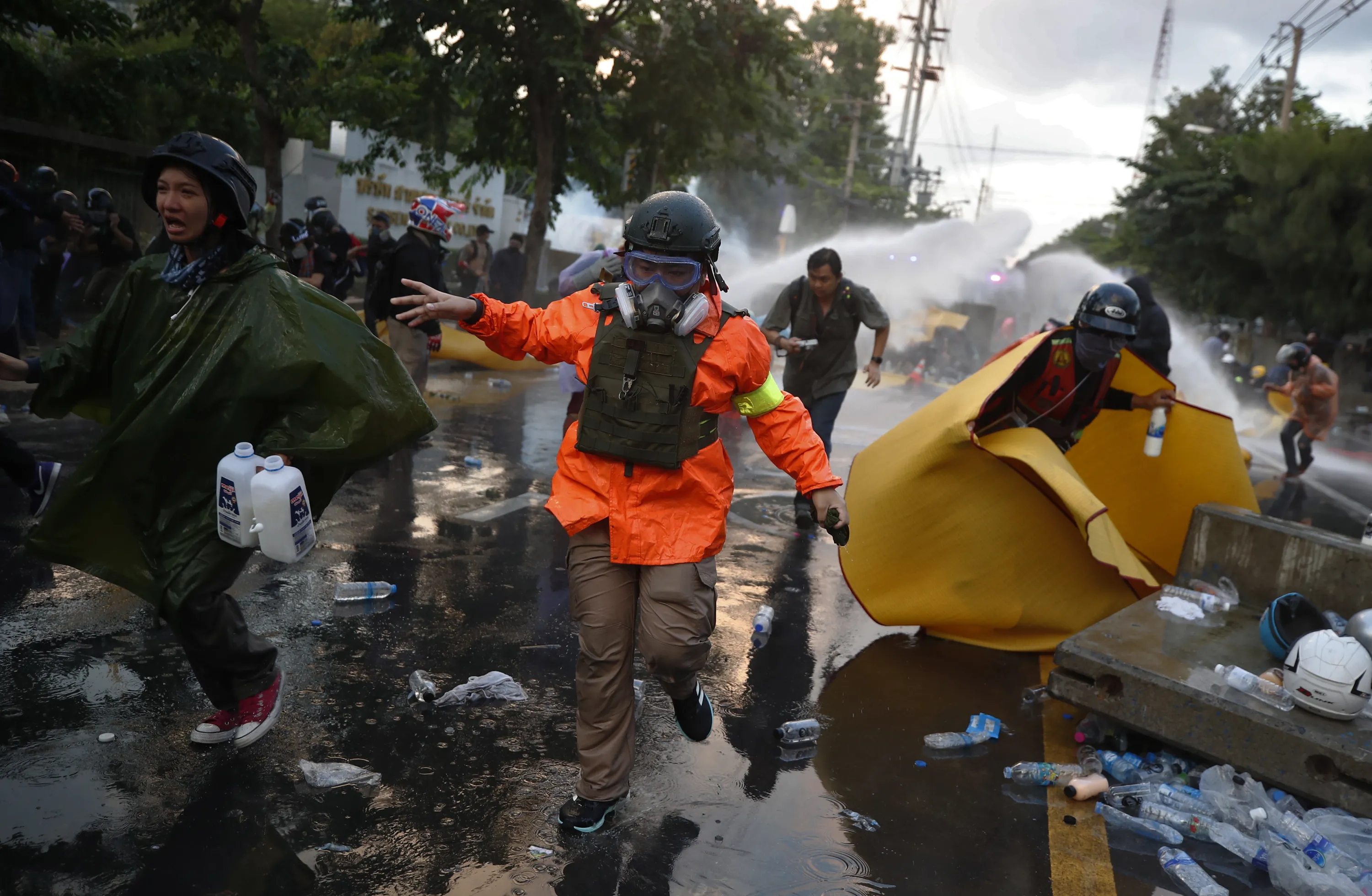 Pro-democracy take part in a protest during the charter amendment as part of the demonstration calling for political and monarchy reform at Parliament in Bangkok, Thailand, 17 November 2020. Thai lawmakers set to debate in a two-day parliament session over the constitution amendment drafts amid both anti-government protesters and ultra-royalists converging their demonstrations outside the parliament during the session. Thailand’s politics intensified by months-long street protests calling for the political and monarchy reform and the resignation of the prime minister while the ultra-royalists demonstrate to show their support to the monarch. (Photo by Diego Azubel/EPA/EFE)