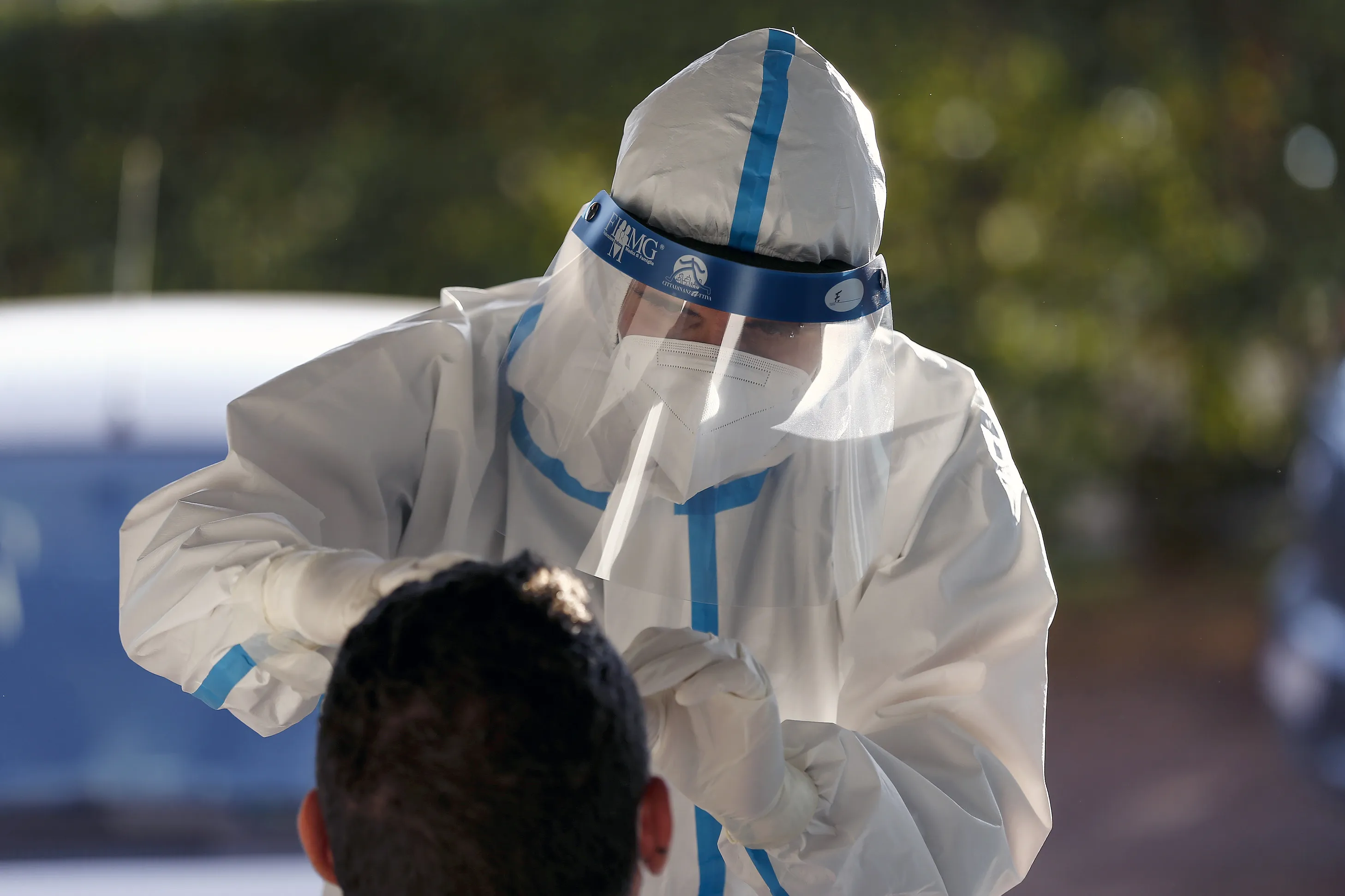 A medical staff member takes nasal swabs as he tests for COVID-19 at a family doctor medical office in Rome, Thursday, November 19, 2020. Italian family doctors have started to perform rapid tests for coronavirus in order to ease pressure on the health system overwhelmed with requests. The first Western country to identify a domestic outbreak, Italy’s death toll stands at 47,870, second to Britain in Europe. (Photo by Cecilia Fabiano/LaPresse via AP Photo)