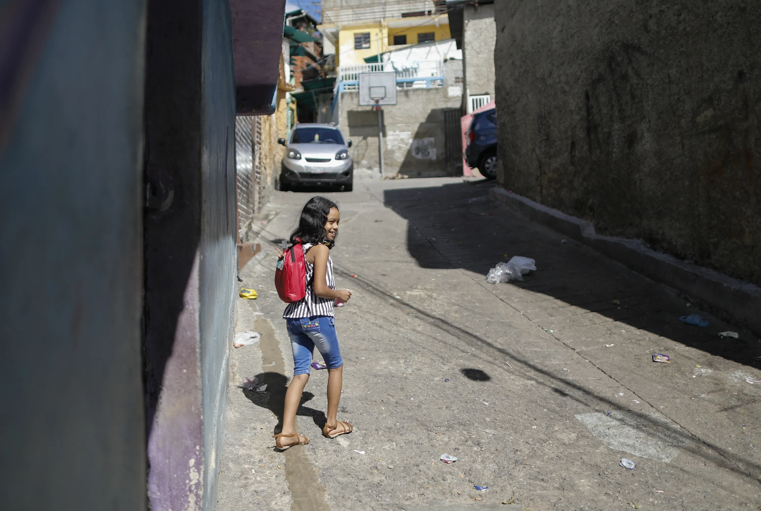 Jenashly Matos walks back home after attending a tutorial class at a soup kitchen run by the Venezuelan charity, “Feed the Solidarity”, in the El Atlantico neighborhood of Caracas, Venezuela, Monday, November 2, 2020. “If I'm not learning, I feel like I'm nobody in life”, said the 9-year-old. “That's why I come here”. (Photo by Ariana Cubillos/AP Photo)
