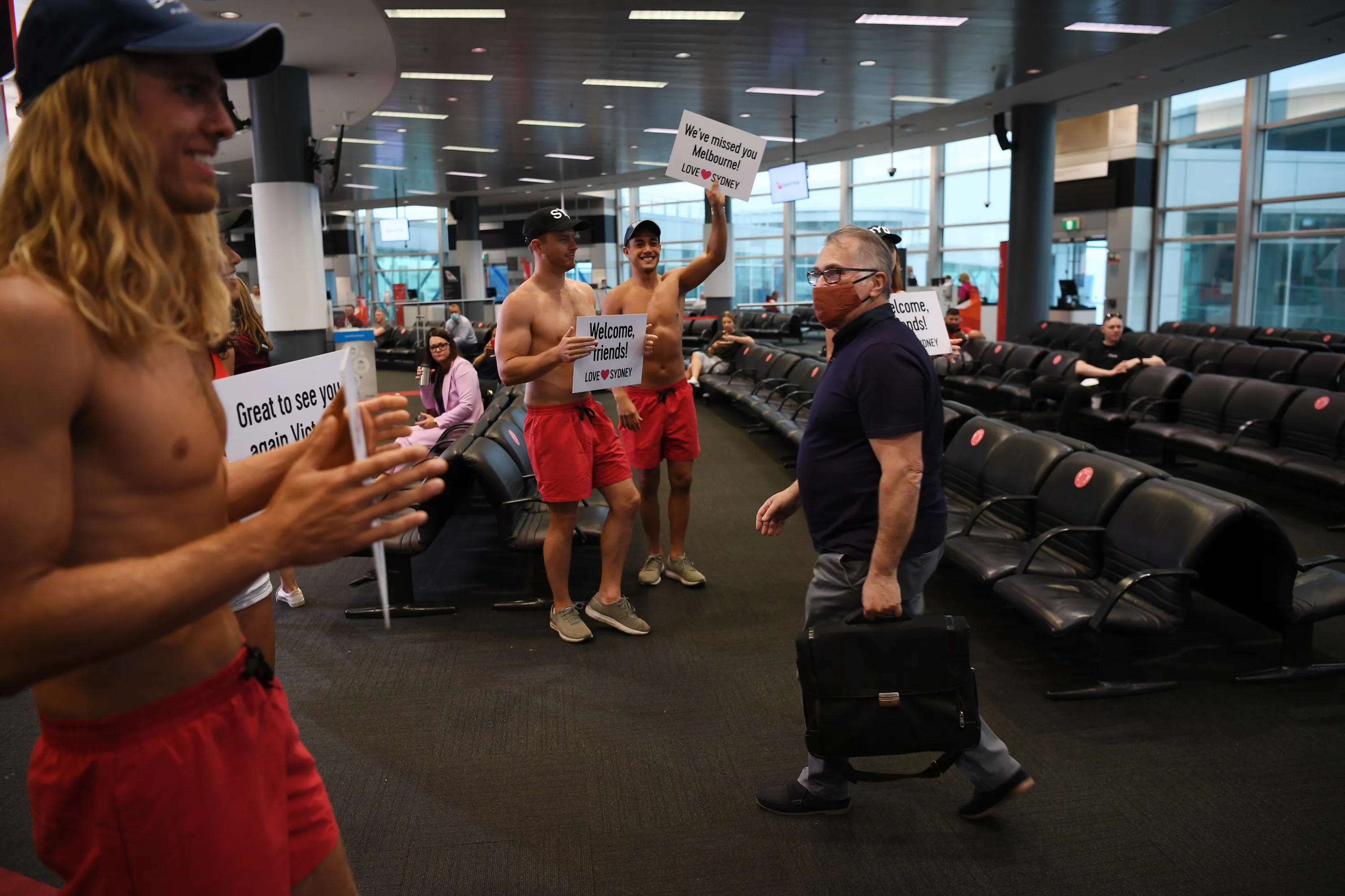 Passengers disembark the first Qantas flight from Melbourne following the lifting of border restrictions at Sydney Airport, Sydney, New South Wales, Australia, 23 November 2020. Border restrictions were lifted between New South Wales and Victoria at midnight last night allowing people coming from Victoria to enter New South Wales without having to go into 14 day isolation. (Photo by Dean Lewins/EPA/EFE)