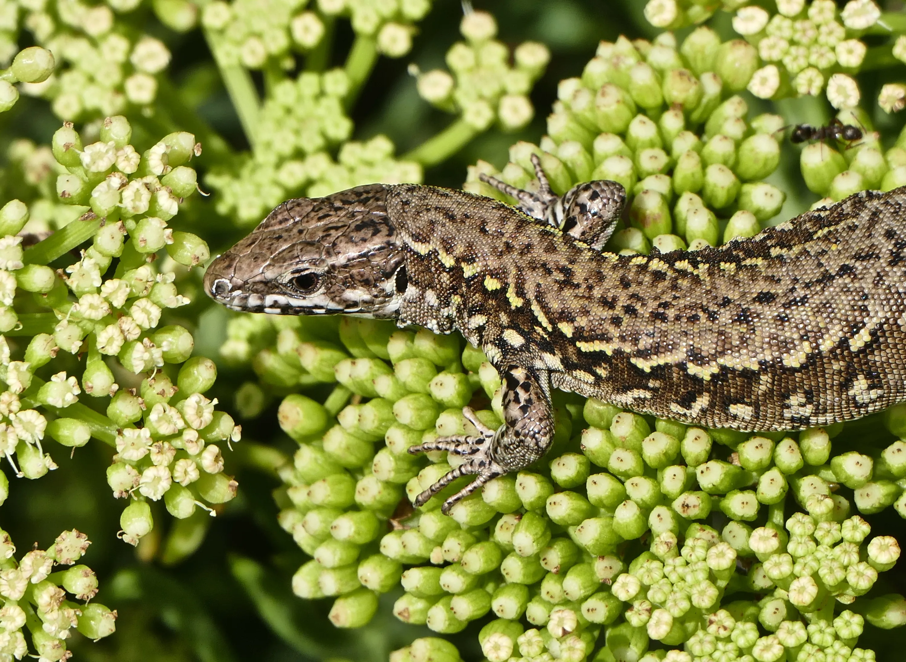 A sand lizard basking in the sunshine in Dorset, England on August 22, 2019. (Photo by Geoffrey Swaine/Rex Features/Shutterstock)