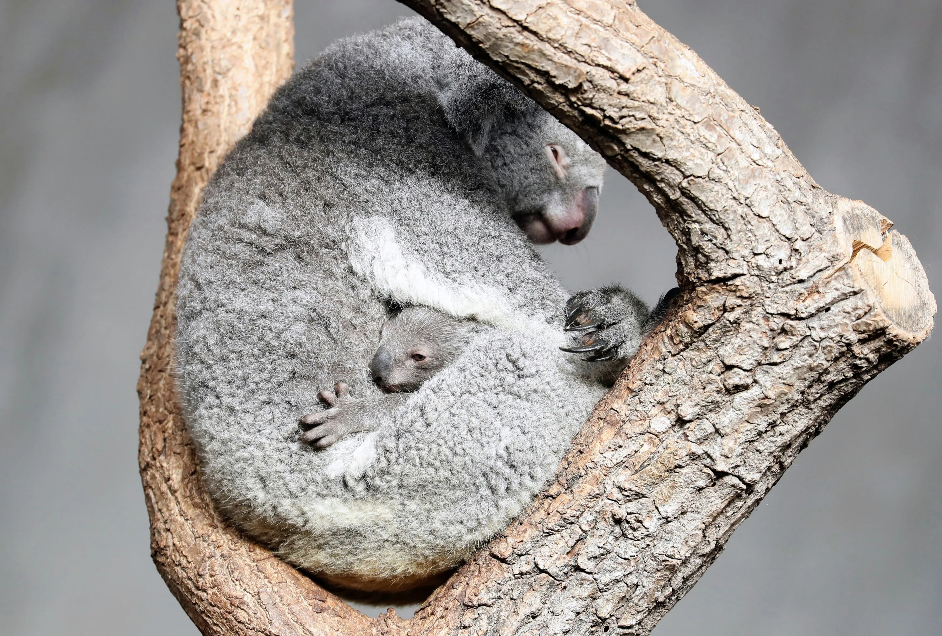 A several months-old unnamed koala Joey looks out of the pouch of its mother Pippa at the zoo in Zurich, Switzerland on November 18, 2020. (Photo by Arnd Wiegmann/Reuters)