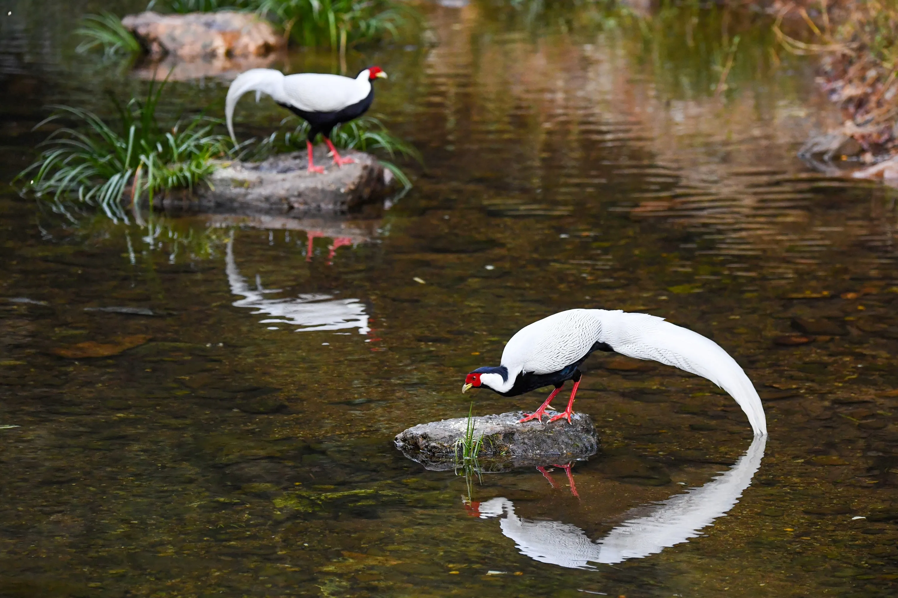 Two male silver pheasants rest on rocks in front of a waterfall in Fengtian Village of Qingshui Township of the She ethnic group, Yong'an, southeast China's Fujian Province, November 22, 2020. (Photo by Xinhua News Agency/Rex Features/Shutterstock)