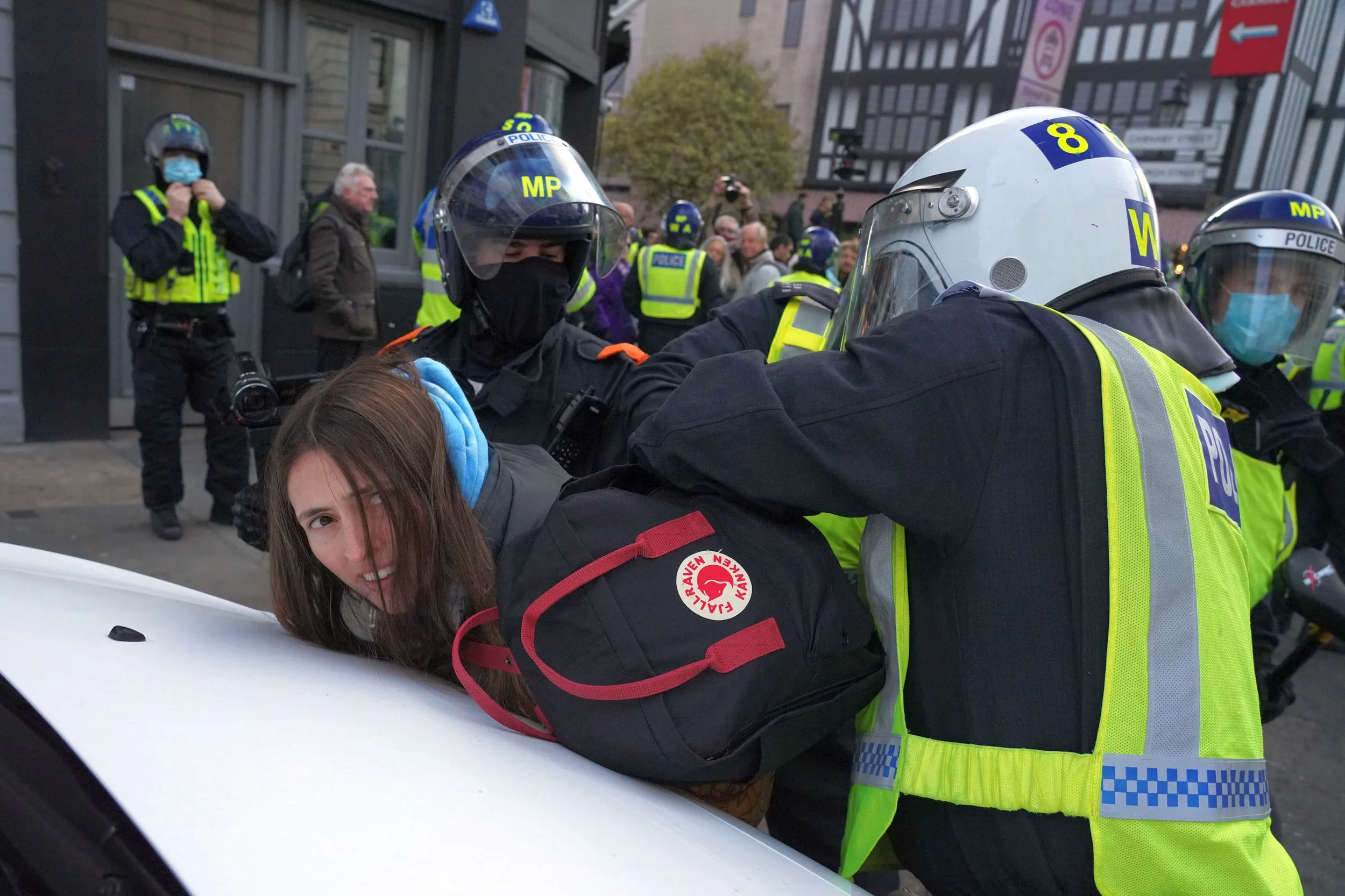 Police officers arrest a protester during the demonstration in London, United Kingdom on November 28, 2020. Police officers have arrested more than 60 anti-lockdown protesters who had gathered in Central London to demonstrate against the government lockdown measures to contain the spread of Covid-19. (Photo by Lewis Inman/SOPA Images/LightRocket via Getty Images)