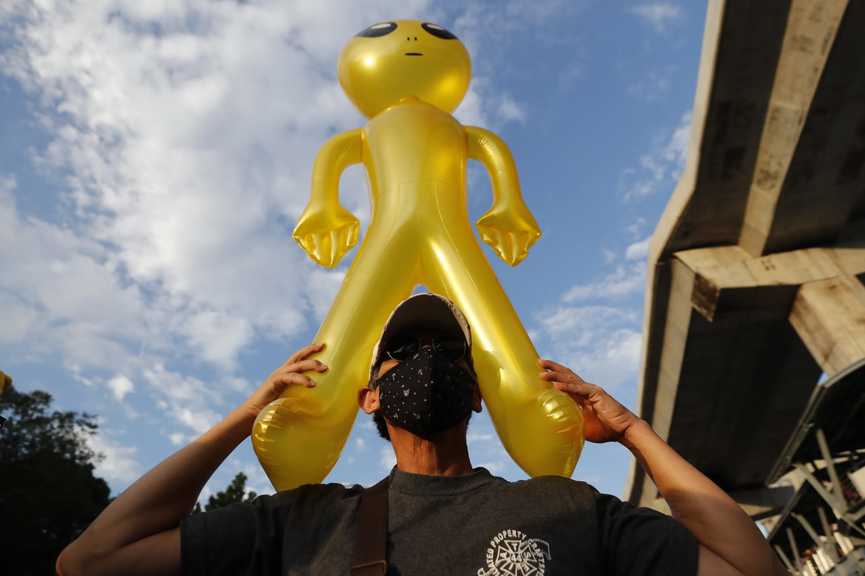 A protester holds a balloon shaped like an alien - to mock accusations that foreigners fund and direct their movement – during a rally Friday, November 27, 2020 in Bangkok, Thailand. Pro-democracy demonstrators are continuing their protests calling for the government to step down and reforms to the constitution and the monarchy, despite legal charges being filed against them and the possibility of violence from their opponents or a military crackdown. (Photo by Sakchai Lalit/AP Photo)