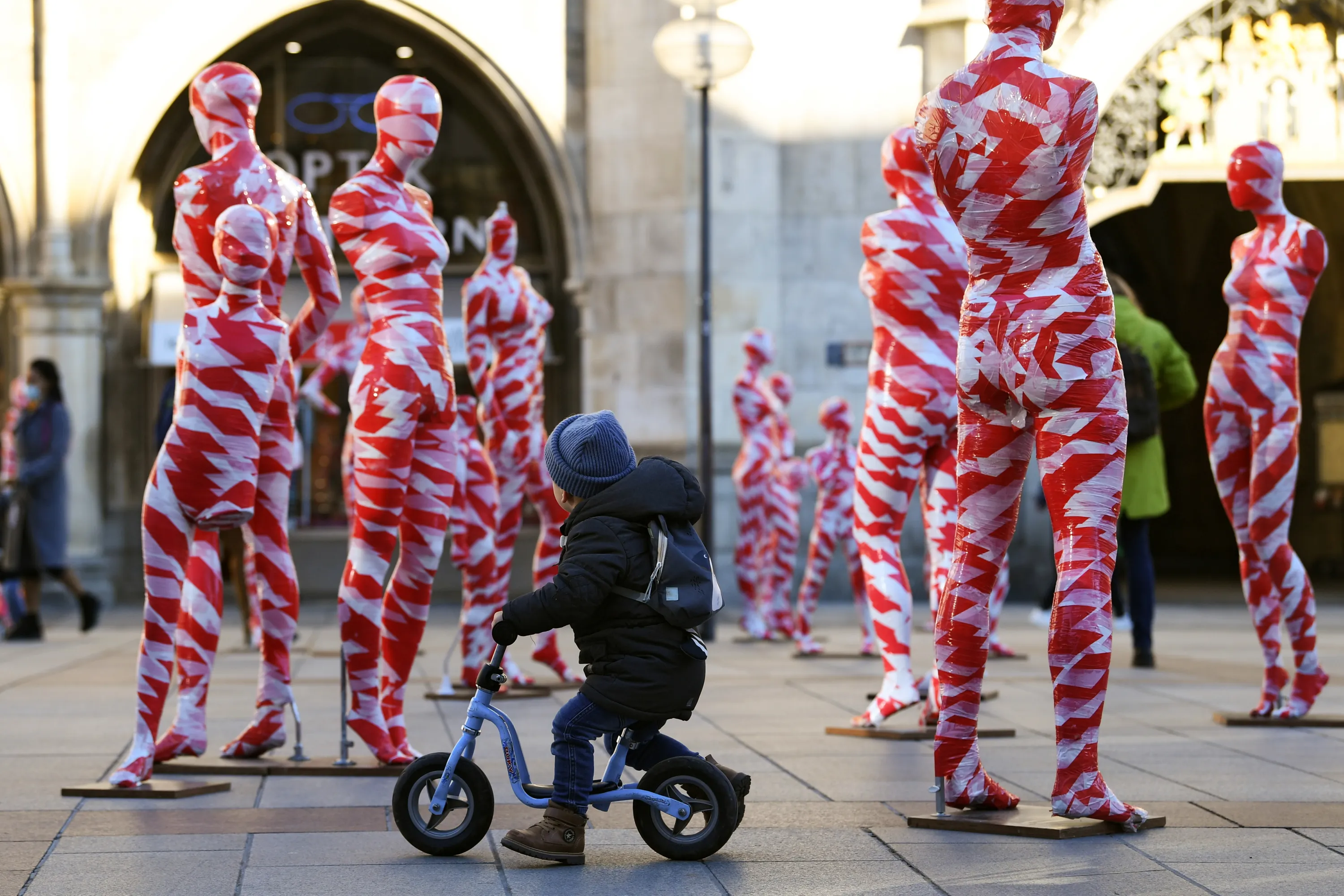 A little boy looks at an art installation with 111 mannequins on Marienplatz calling for more “mindfulness and appreciation” in times of corona as the spread of the coronavirus disease (COVID-19) continues in Munich, Germany, November 18, 2020. (Photo by Andreas Gebert/Reuters)