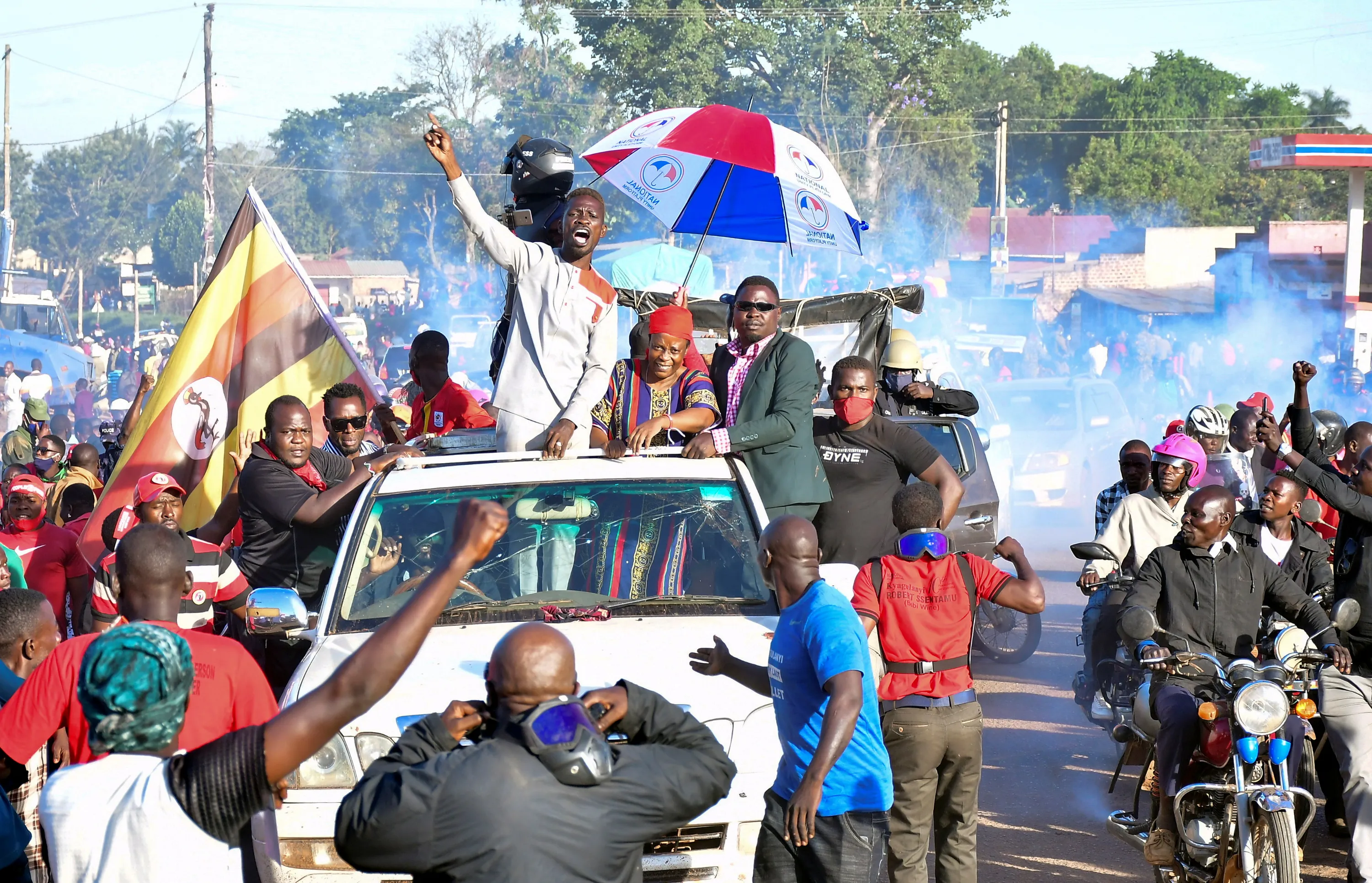 Ugandan pop star and presidential candidate Robert Kyagulanyi, also known as Bobi Wine, campaigns near Kampala, Uganda, November 30, 2020. (Photo by Abubaker Lubowa/Reuters)