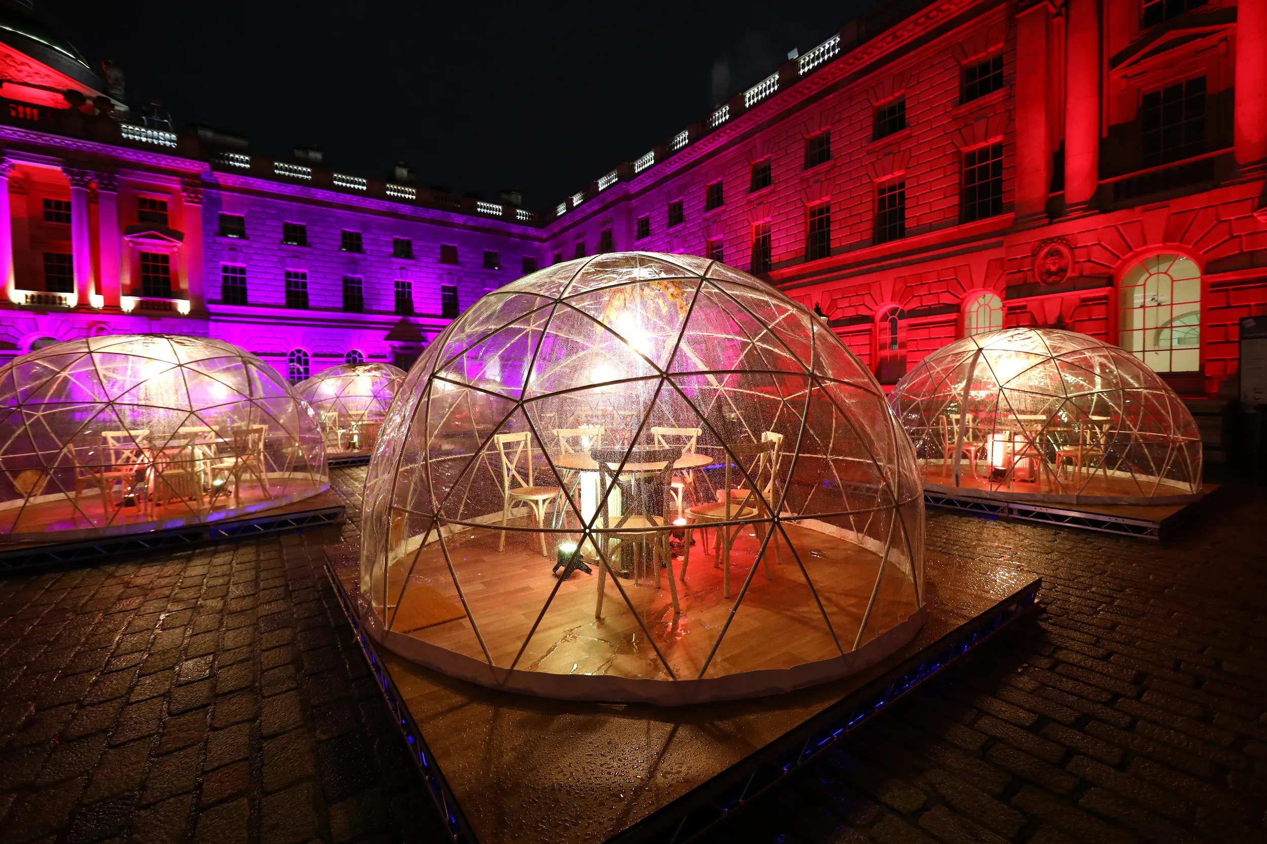 Pop-up winter domes are installed in the courtyard in preparation for a new dining experience, open to the public from December 3rd to January 1st, ahead of todays re-opening at Somerset House on December 03, 2020 in London, England. (Photo by Tim P. Whitby/Getty Images)