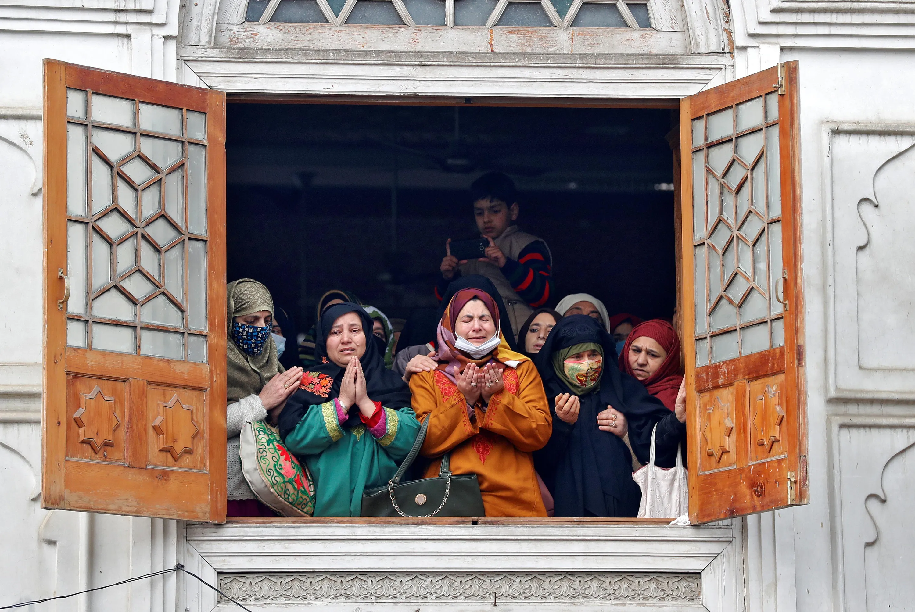 Kashmiri Muslim women react upon seeing a relic of Sheikh Abdul Qadir Jeelani, a Sufi saint also known as Shah-e-Baghdad (King of Baghdad), a week after Jeelani's death, at his shrine, amidst the spread of the coronavirus disease (COVID-19) in Srinagar, December 4, 2020. (Photo by Danish Ismail/Reuters)