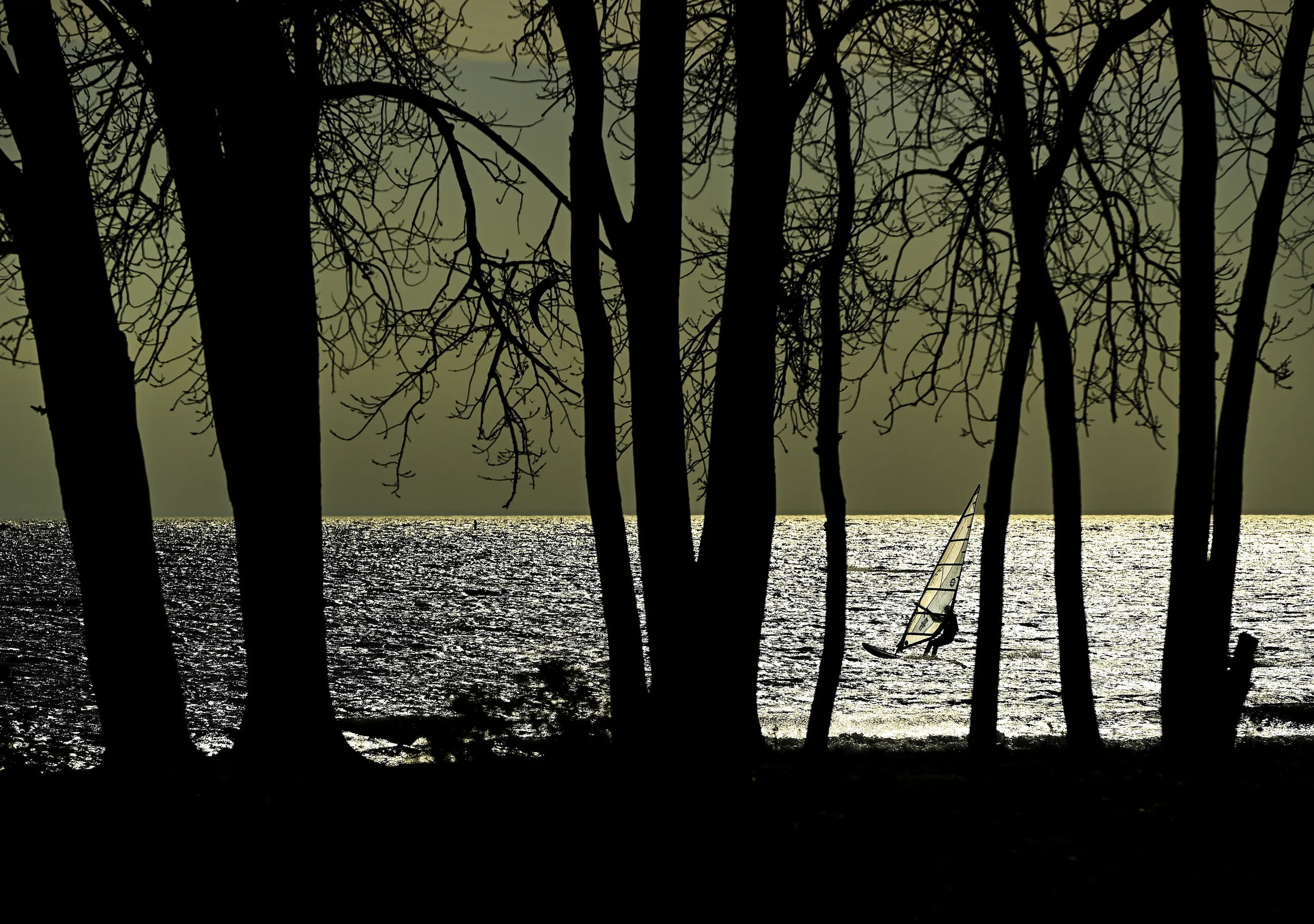 A wind-surfer glides on Lake Ontario at Cherry Beach on a warm fall day during the COVID-19 pandemic in Toronto, Friday, November 20, 2020. (Photo by Nathan Denette/The Canadian Press via AP Photo)