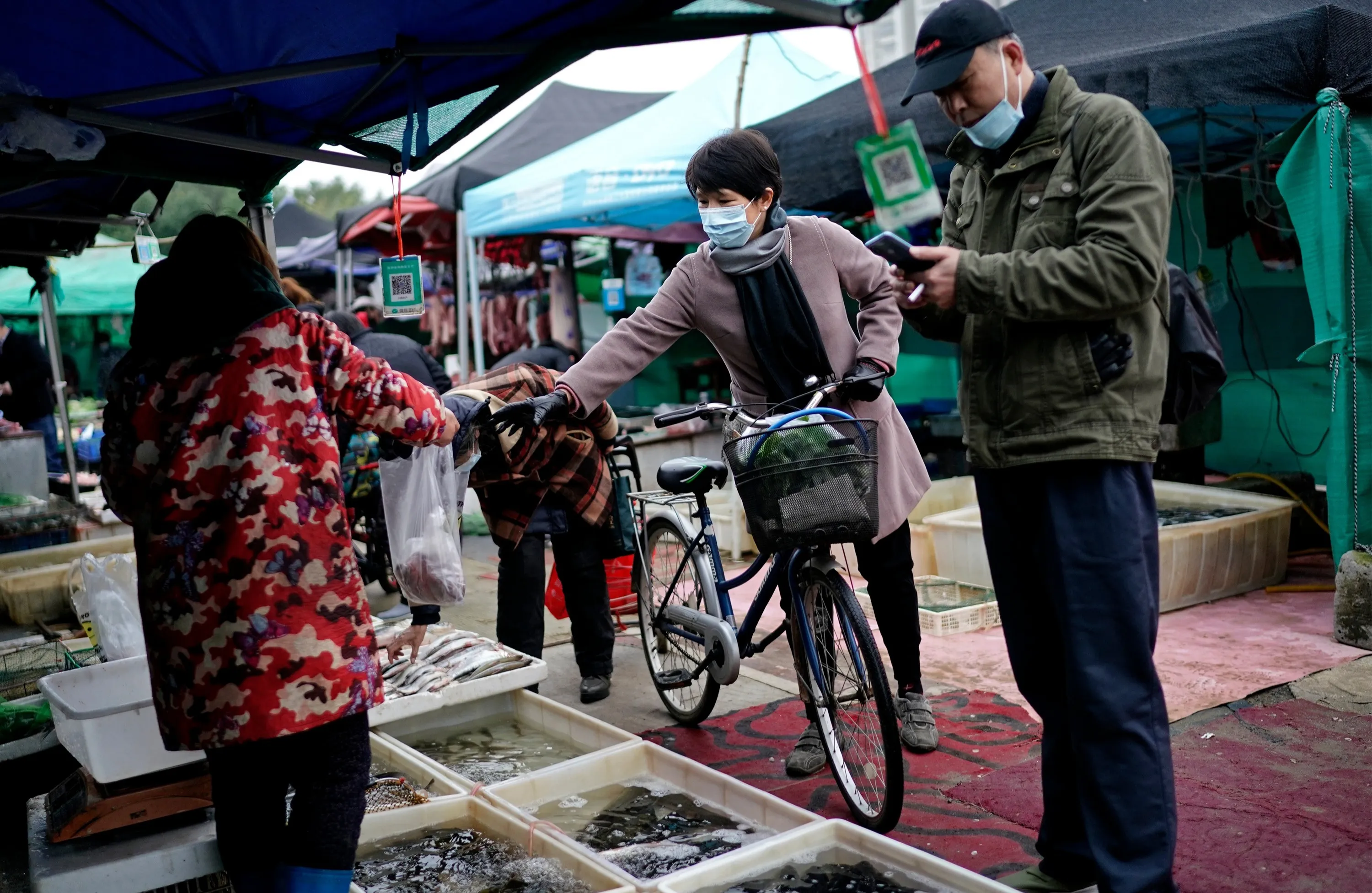 Vendors selling fish in an open market on December 2, 2020 in Wuhan, Hubei province,China. With no recorded cases of community transmissions since May, life for residents is gradually returning to normal. (Photo by Getty Images)