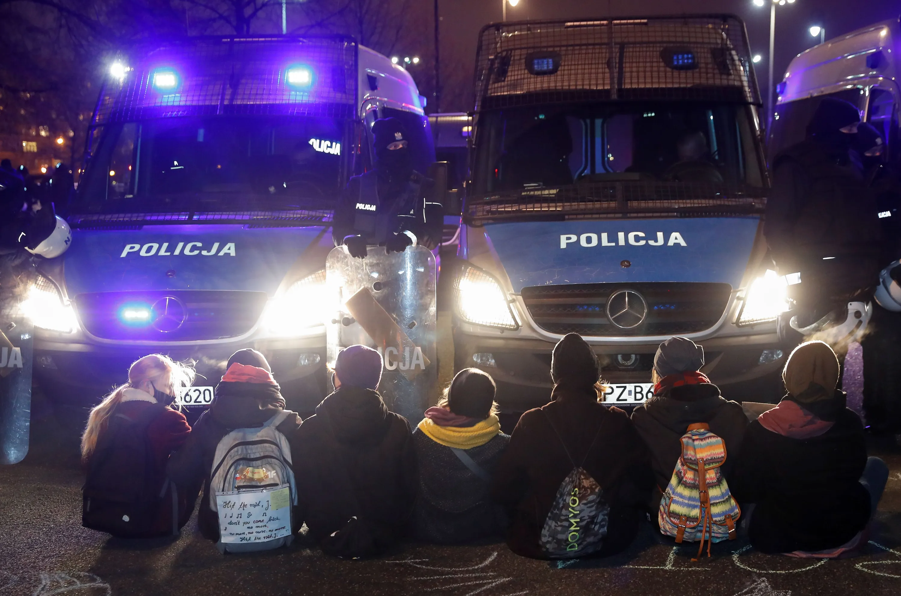 Participants block the street in front of Polish Prime Minister office as they take part in a demonstration organized by left wing organisations and environmental activists – Extinction Rebelion, Greenpeace, Fridays for Future, Women's Strike and others, demanding Polish authorities to agree on a new EU emission reduction target for 2030, on the eve of the European Council summit, Warsaw, December 9, 2020. (Photo by Kacper Pempel/Reuters)