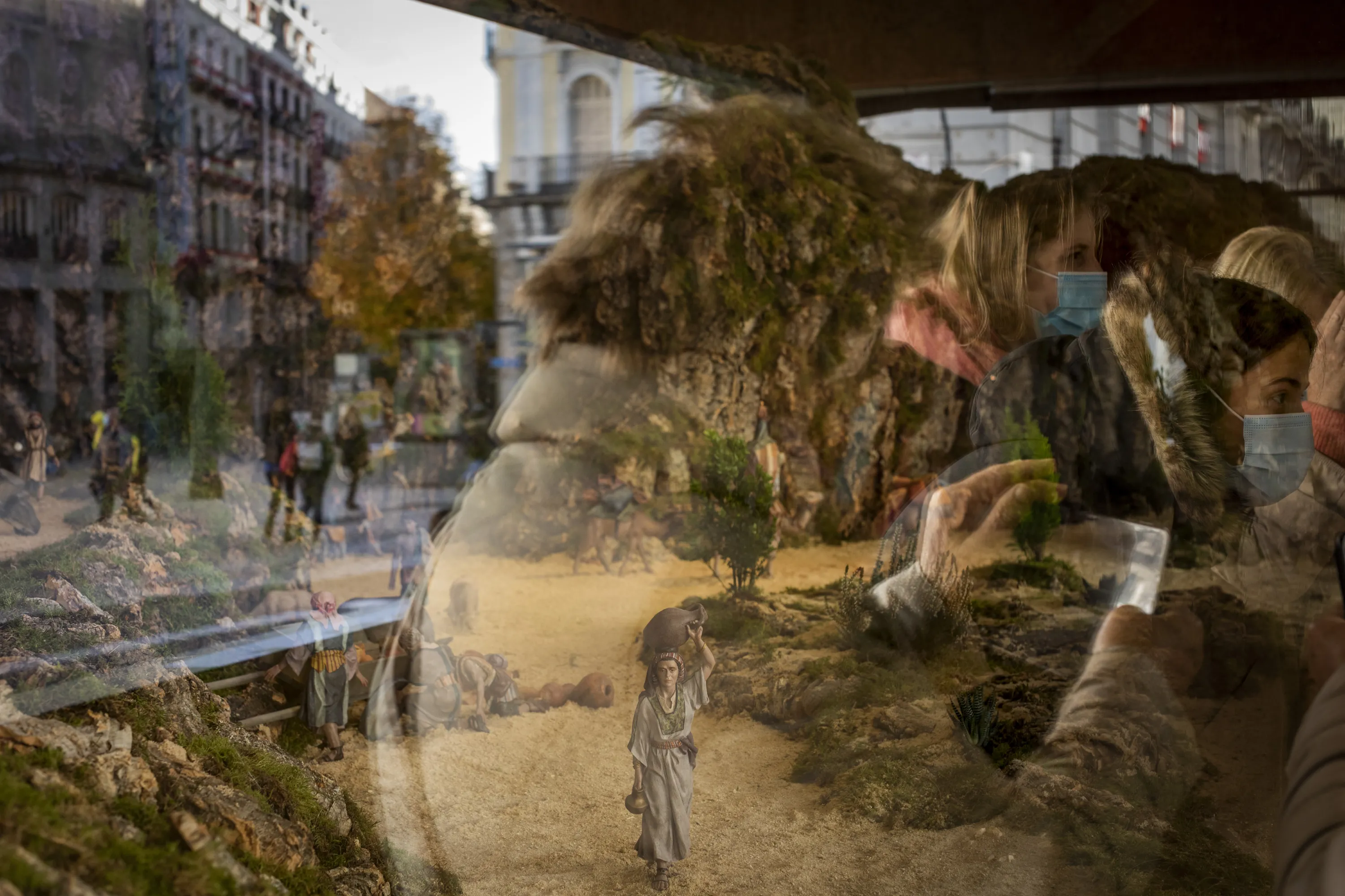 People watch a Christmas nativity scene in downtown Madrid, Spain, Thursday, December 3, 2020. Spain will slightly ease the country's curfew restrictions on some days over the Christmas holidays while keeping most limits in place due to the pandemic. (Photo by Bernat Armangue/AP Photo)