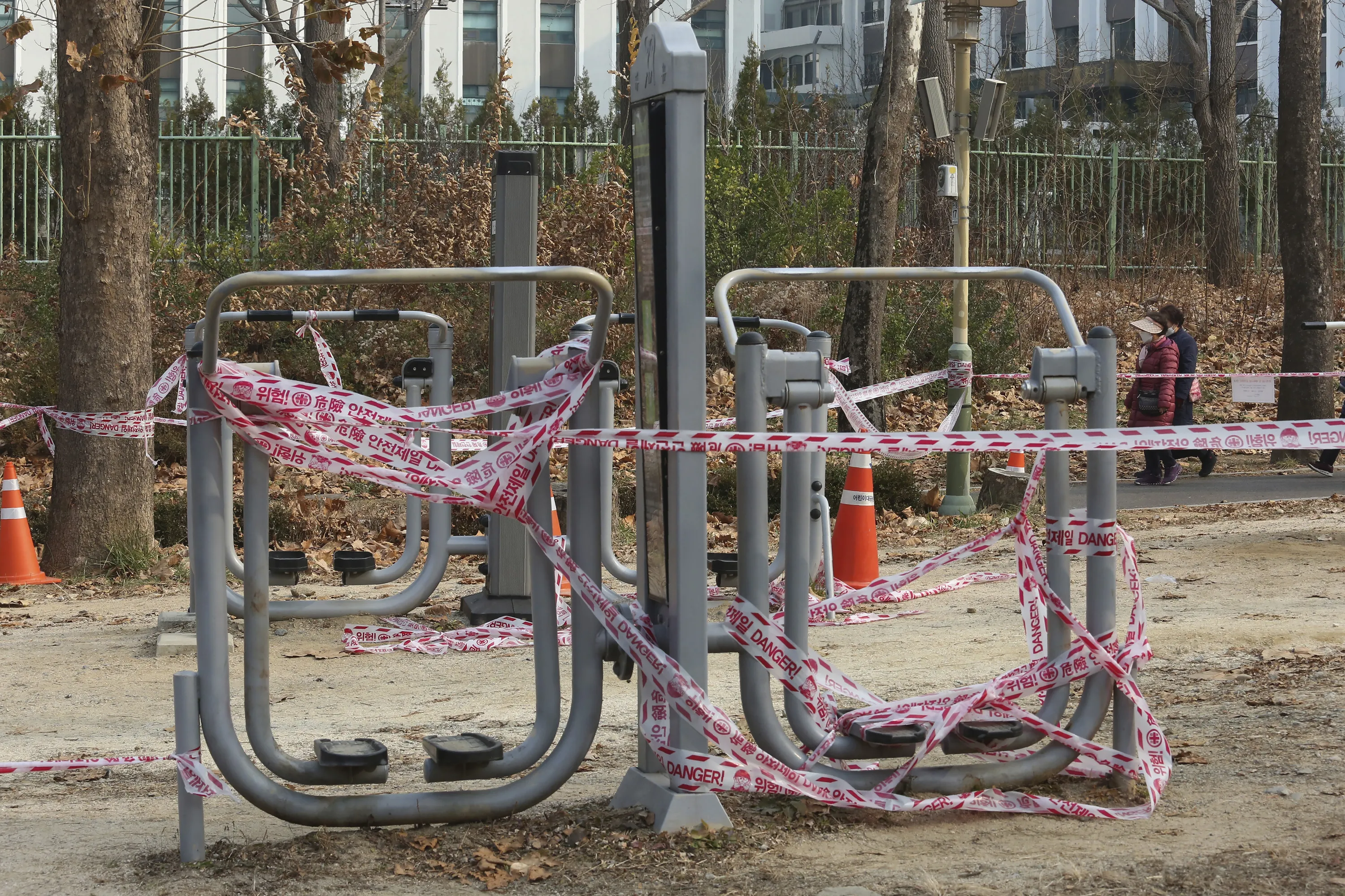 The use of public sports facilities is banned amid social distancing rules at a park in Seoul, South Korea, Friday, December 11, 2020. South Korea is expanding the use of rapid tests and deploying hundreds of police officers and soldiers to help with contact tracing as it deals with its worst surge of coronavirus cases since the early days of the pandemic. (Photo by Ahn Young-joon/AP Photo)