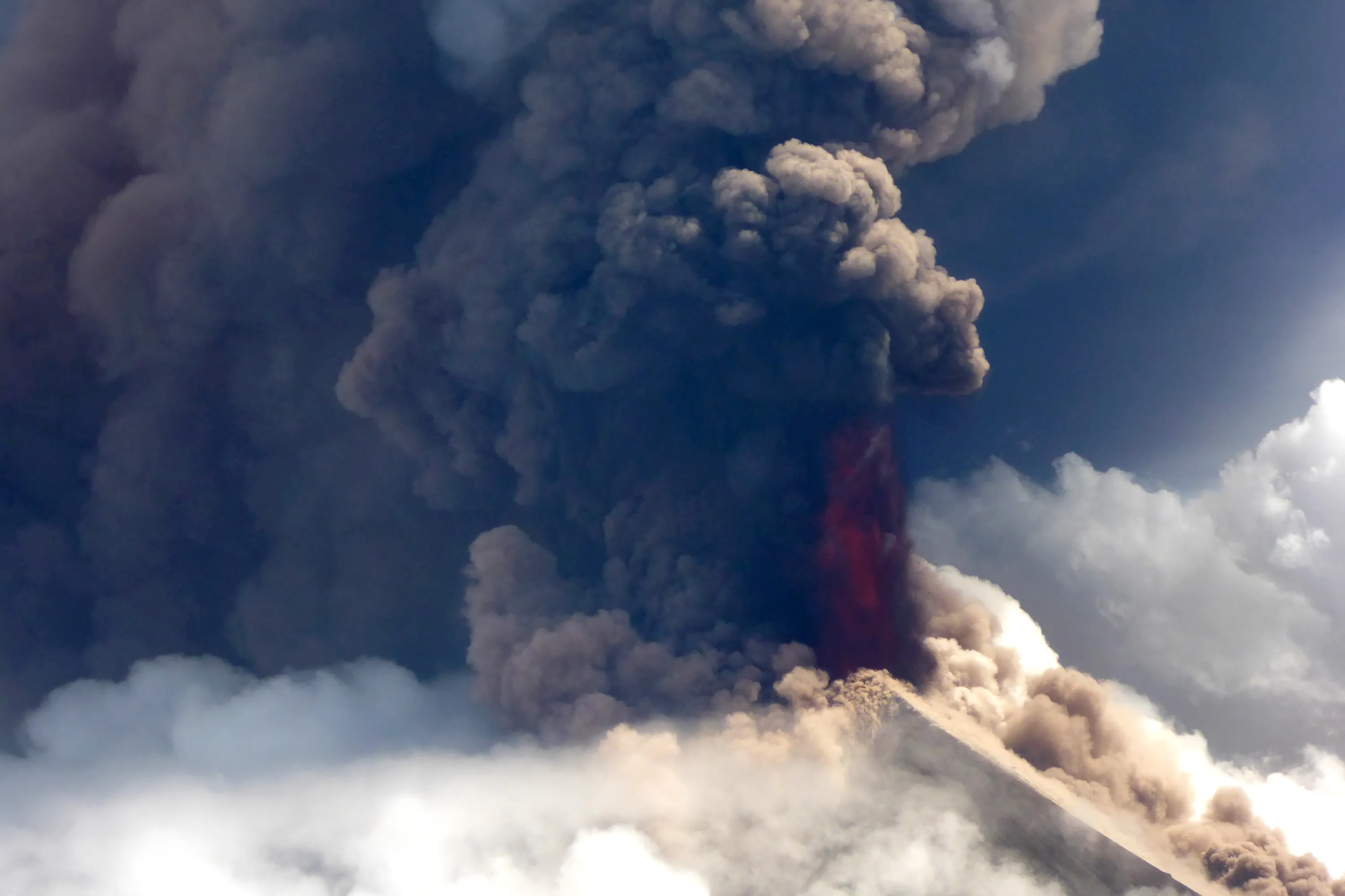 This handout from Niugini Helicopters taken and recieved on June 26, 2019 shows Papua New Guinea's Mount Ulawun volcano spewing lava. Papua New Guinea's volatile Ulawun volcano – designated one of the world's most hazardous – erupted on June 26, spewing lava high in the air and sending residents fleeing. (Photo by Craig Powell/Niugini Helicopters/AFP Photo)
