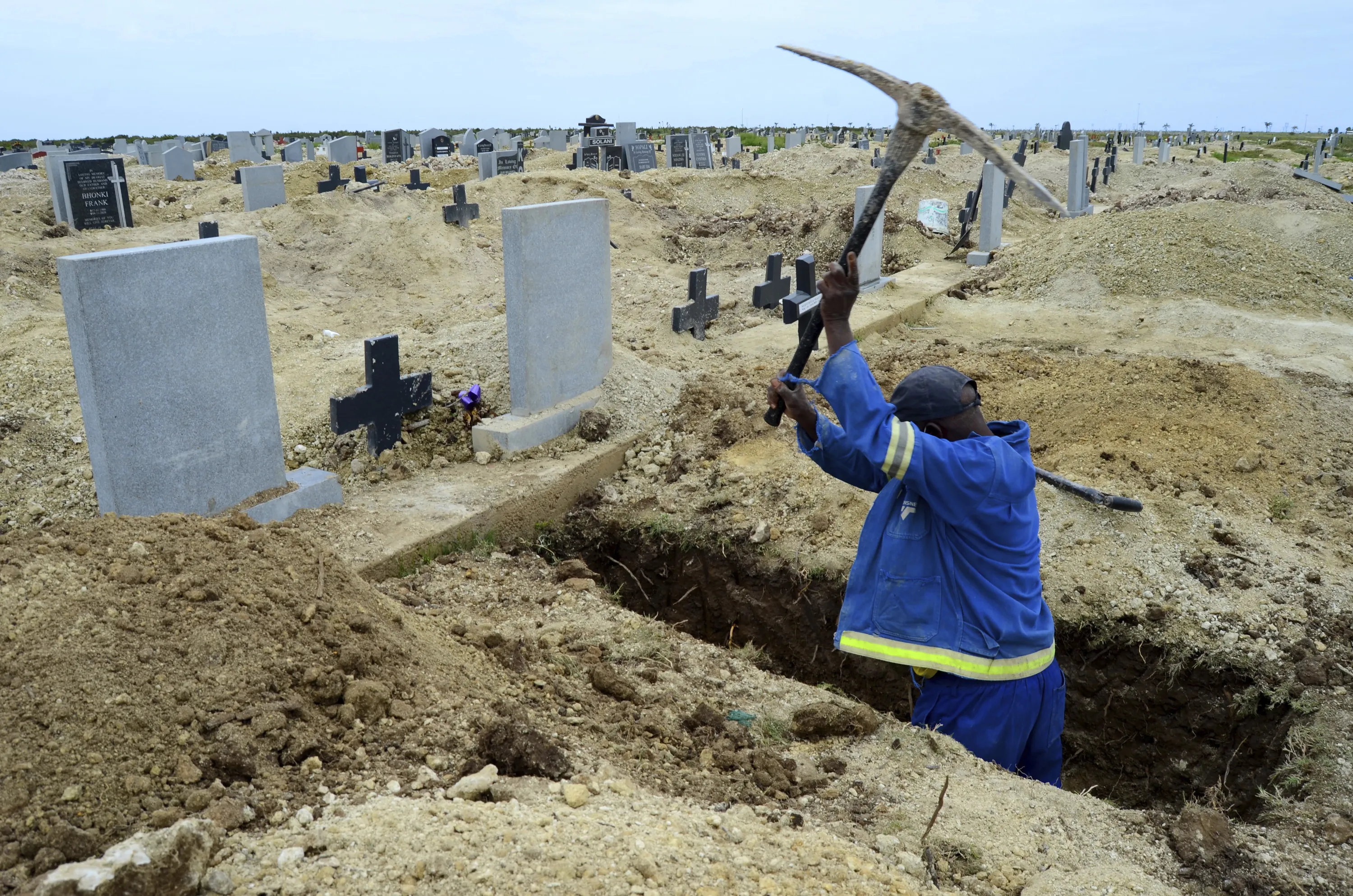 A grave digger prepares graves at the Motherwell Cemetery in Port Elizabeth, South Africa, Friday, Dec. 4, 2020. Health Minister Zweli Mkhize announced on Wednesday, December 9, 2020 that the country is now experiencing a Covid-19 pandemic second wave. (Photo by Theo Jeftha/AP Photo)