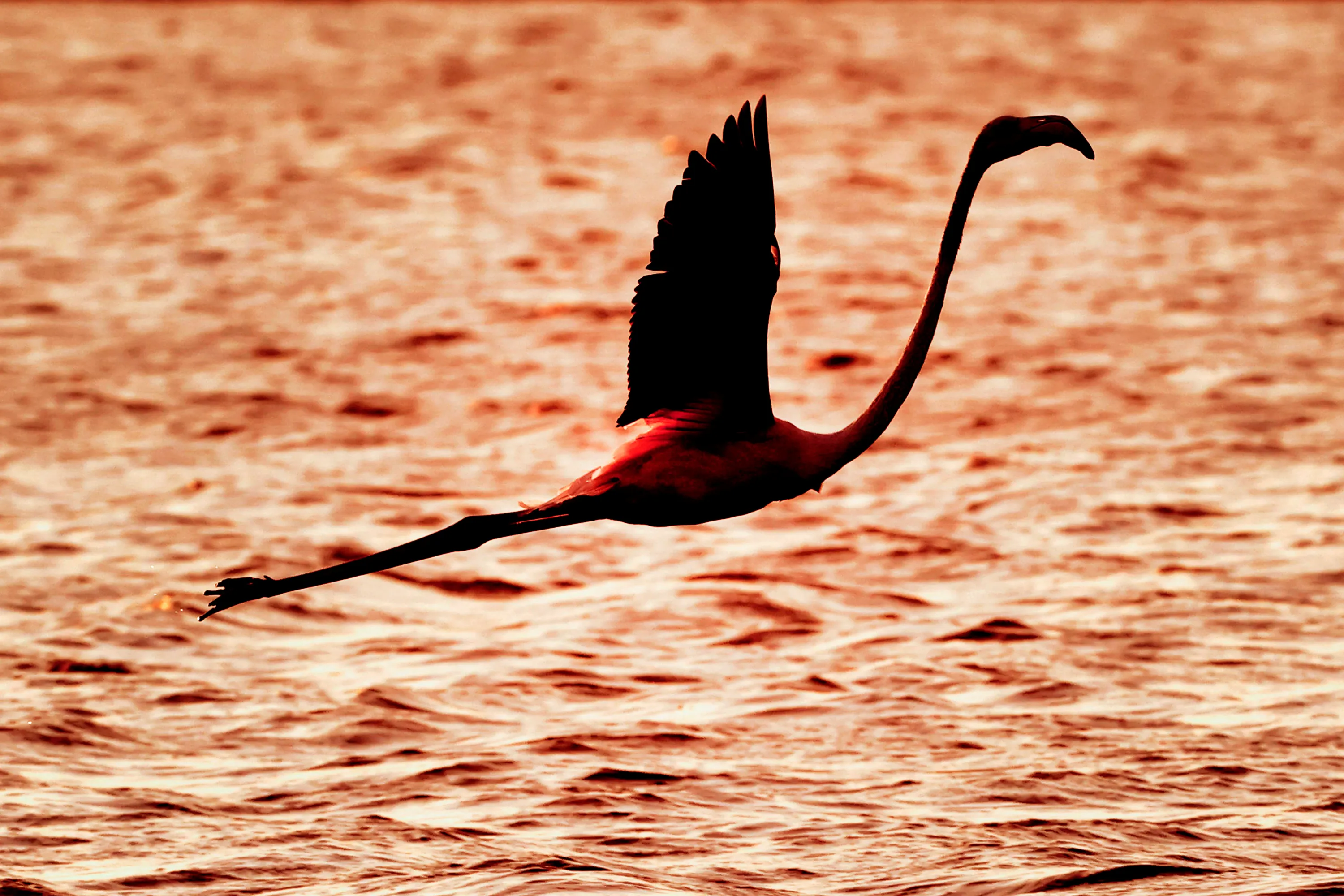 A Flamingo (aka Phoenicopterus Roseus) flies over a reservoir in Atlit, north of Tel Aviv, on October 18, 2020. Flamingos pass through Israel on their way to Africa then again when they return to Europe in the summer. (Photo by Jack Guez/AFP Photo)