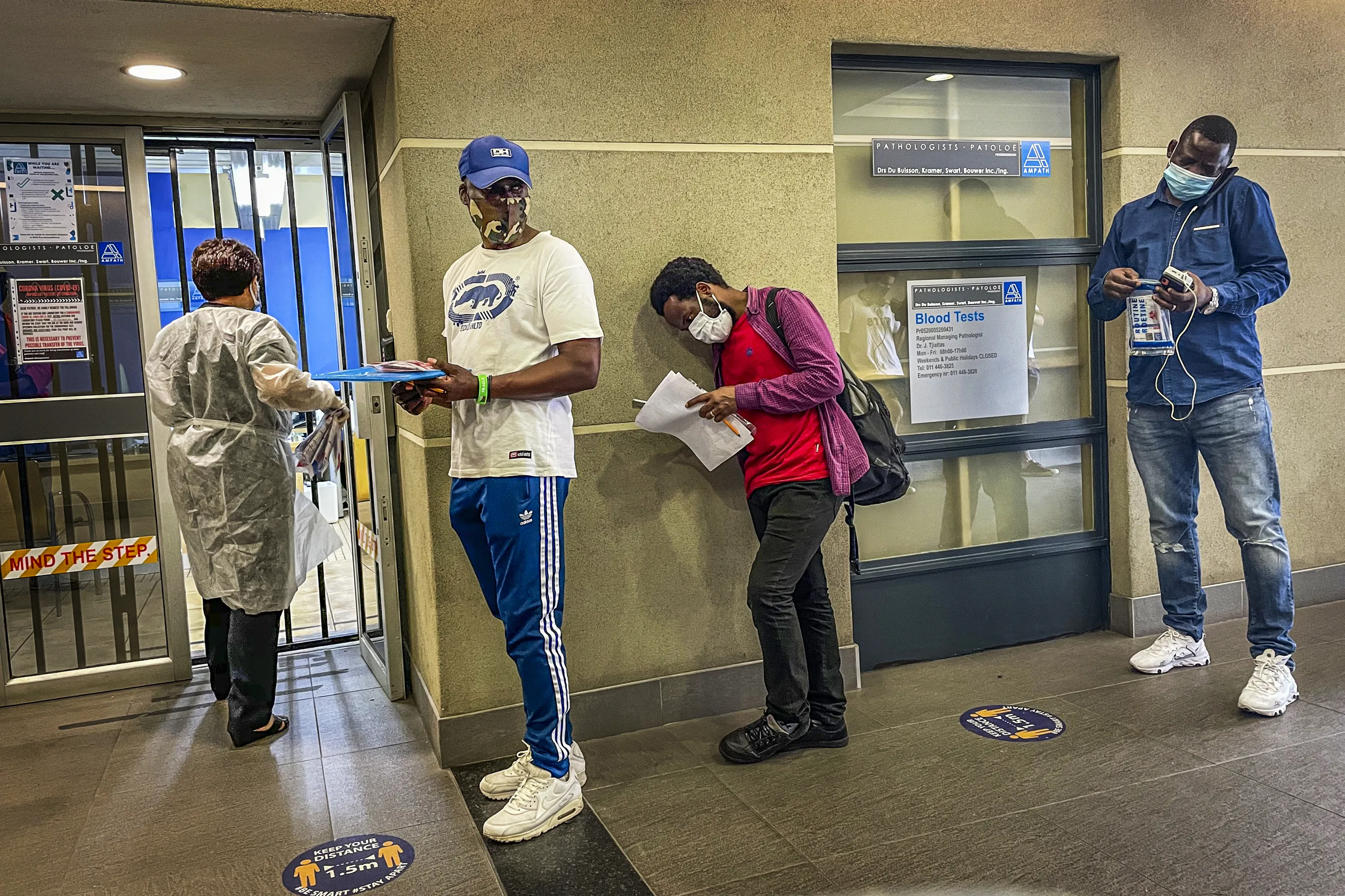 People who were just tested for COVID-19 wait in line to make payment for the test at a private laboratory in Johannesburg, South Africa, Saturday December 19, 2020. South Africa is bracing for its second wave, as many people will travel across provinces for vacations and visiting their families. (Photo by Jerome Delay/AP Photo)