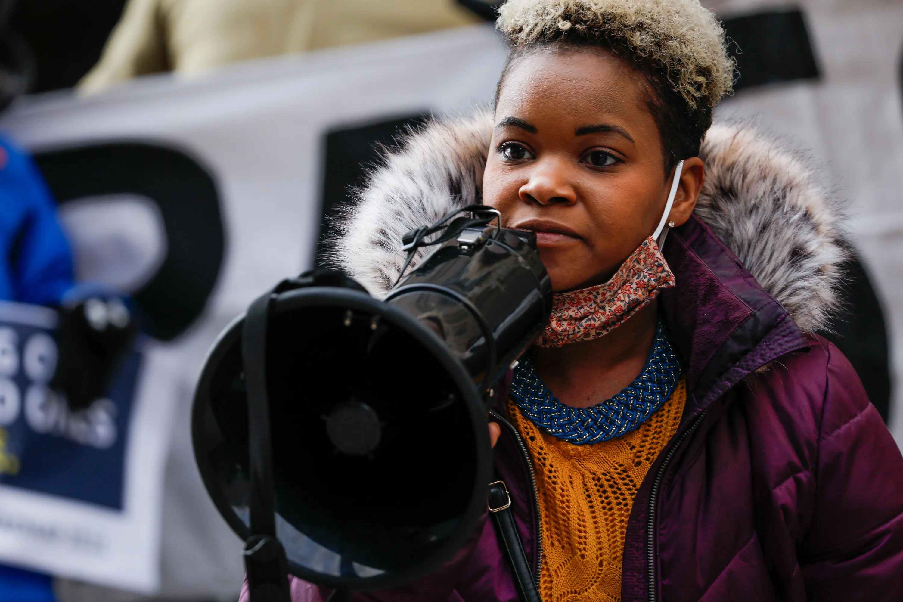 Community activist India Walton holds a megaphone as she campaigns to replace four-term Mayor Byron Brown, in Buffalo, New York, U.S., December 15, 2020. (Photo by Lindsay DeDario/Reuters)