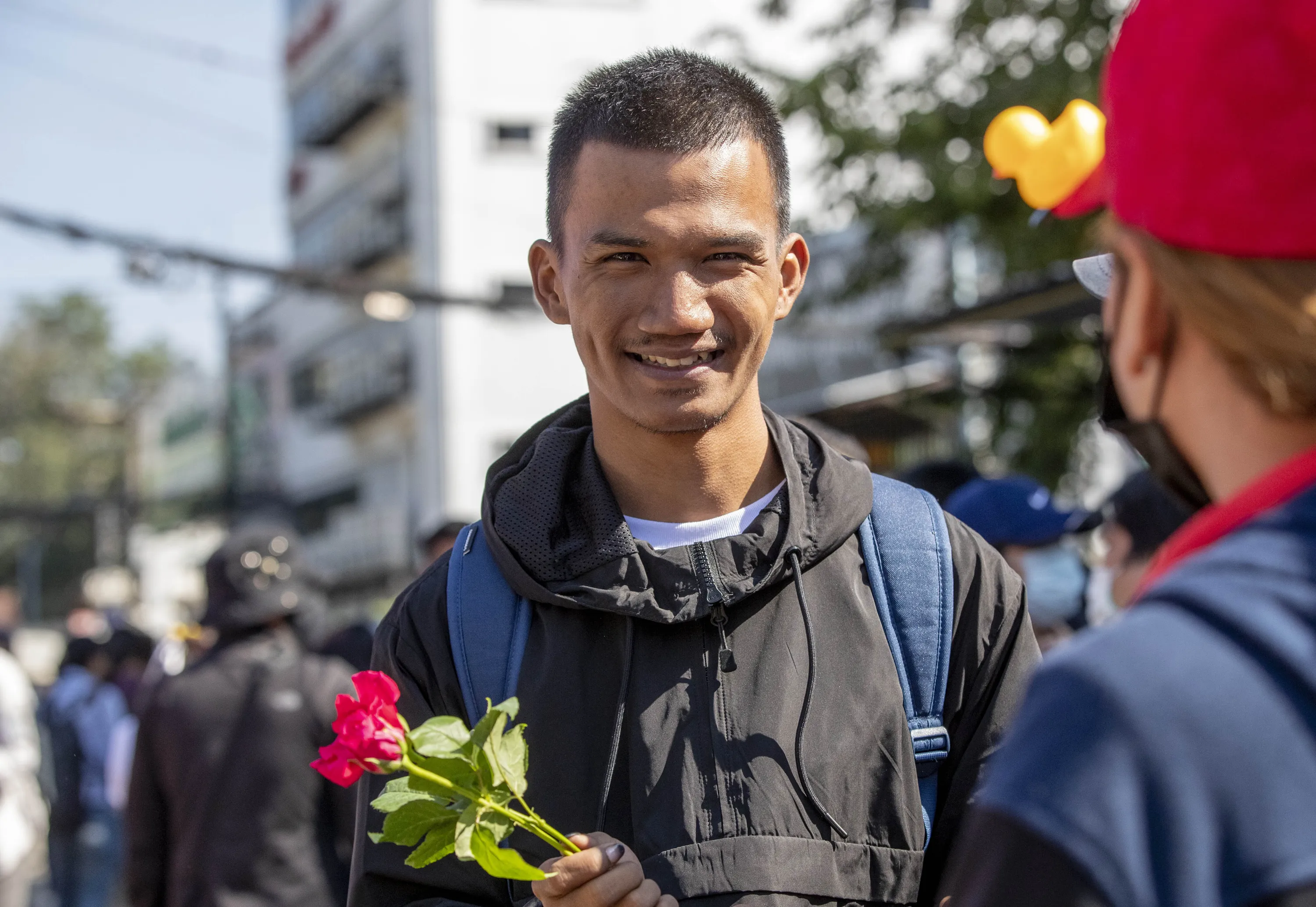 Pro-democracy protest leader Panupong Jadnok smilies outside Bang Khen Metropolitan Police Station, Bangkok, Thailand, Monday, December 21, 2020. Several leaders of protest movement report to the police station to answer the charges of defaming the Thai monarchy, the most serious of many offenses of which they stand accused during recent pro-democracy rallies. (Photo by Gemunu Amarasinghe/AP Photo)