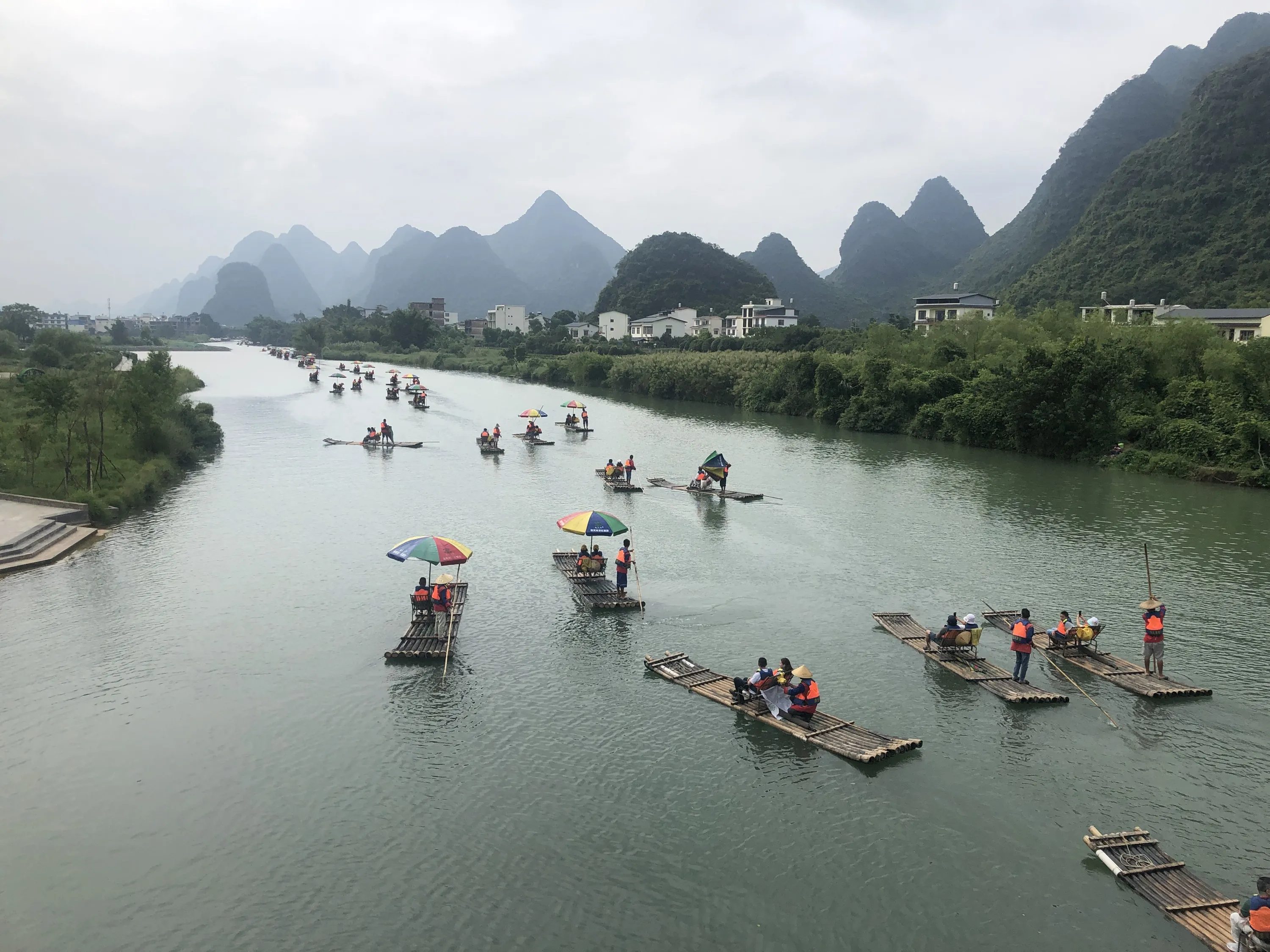 Bamboo rafting along the Yulong River in Yangshuo, China on December 16, 2020. (Photo by Sipa Asia/Rex Features/Shutterstock)