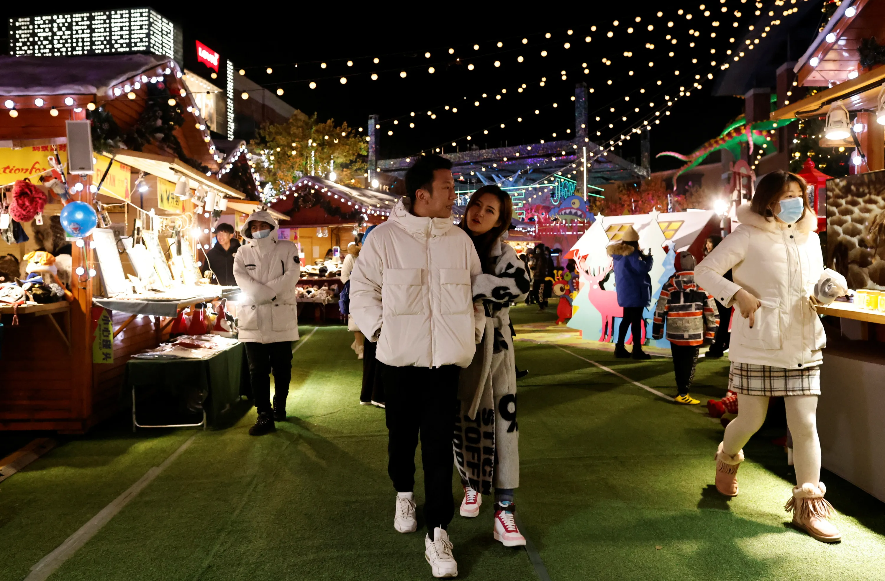 People walk at a Christmas market in a shopping mall following an outbreak of the coronavirus disease (COVID-19) in Beijing, China on December 16, 2020. (Photo by Thomas Peter/Reuters)