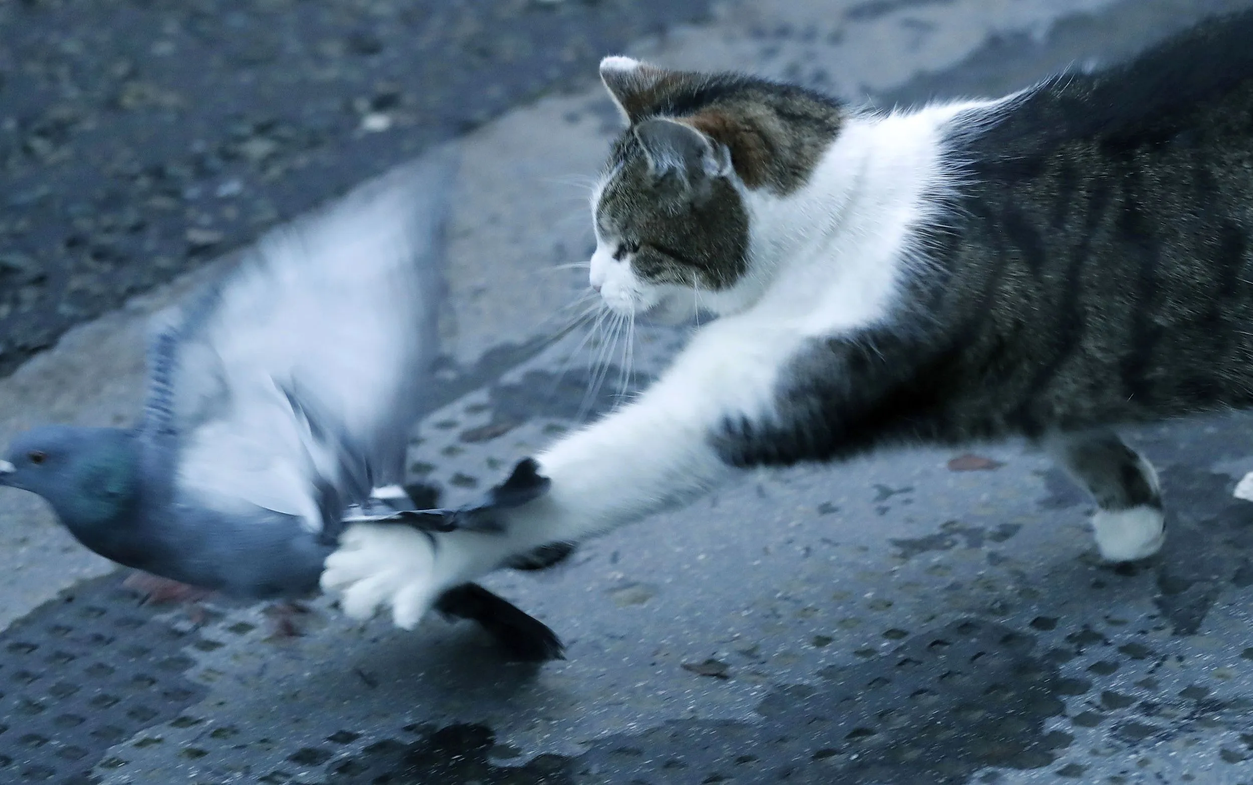 Larry the cat, Chief Mouser to the Cabinet Office catches a pigeon as journalists await results of the Brexit trade deal in Downing Street in London, Thursday, December 24, 2020. European Union and British negotiators are closing in on a trade deal with only a disagreement over fishing remaining, After resolving a few remaining fair competition issues, negotiators were dealing with EU fisheries rights in U.K. waters Wednesday as they worked to secure a deal for a post-Brexit relationship after nine months of talks. (Photo by rank Augstein/AP Photo)