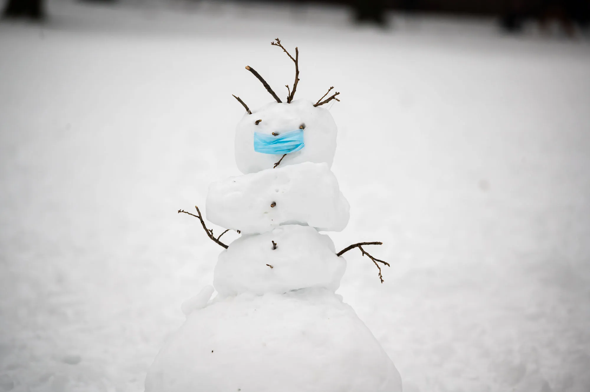 A snowman wears a face mask in Central Park on December 20, 2020 in New York City. The coronavirus pandemic has caused long-term repercussions throughout the tourism and entertainment industries, including temporary and permanent closures of historic and iconic venues, costing the city and businesses billions in revenue. (Photo by Noam Galai/Getty Images)