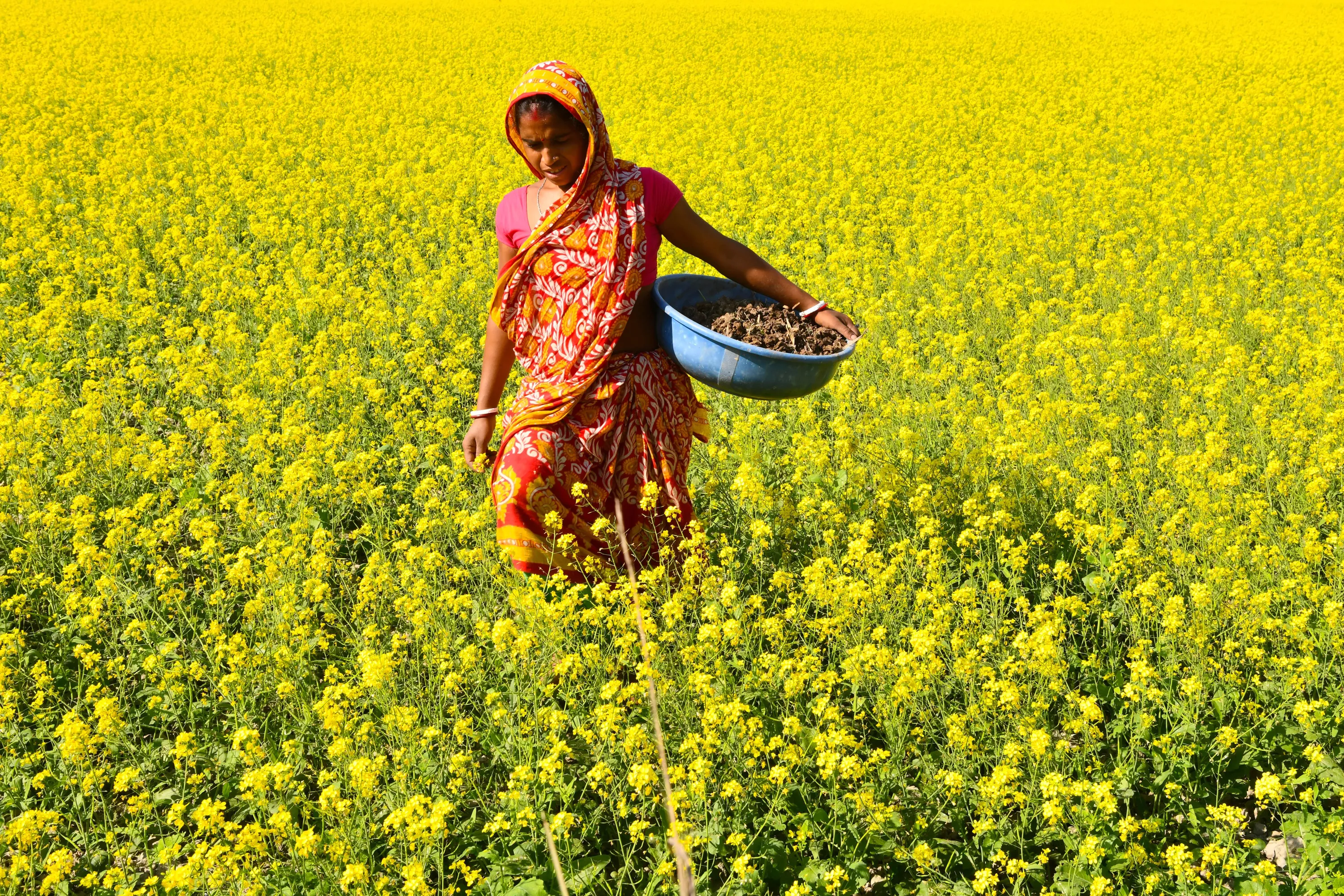 A woman walks through a mustard field in Murkata village in Morigaon district, some 45km from Guwahati, the capital city of India's northeastern state of Assam, on December 23, 2020. (Photo by Biju Boro/AFP Photo)