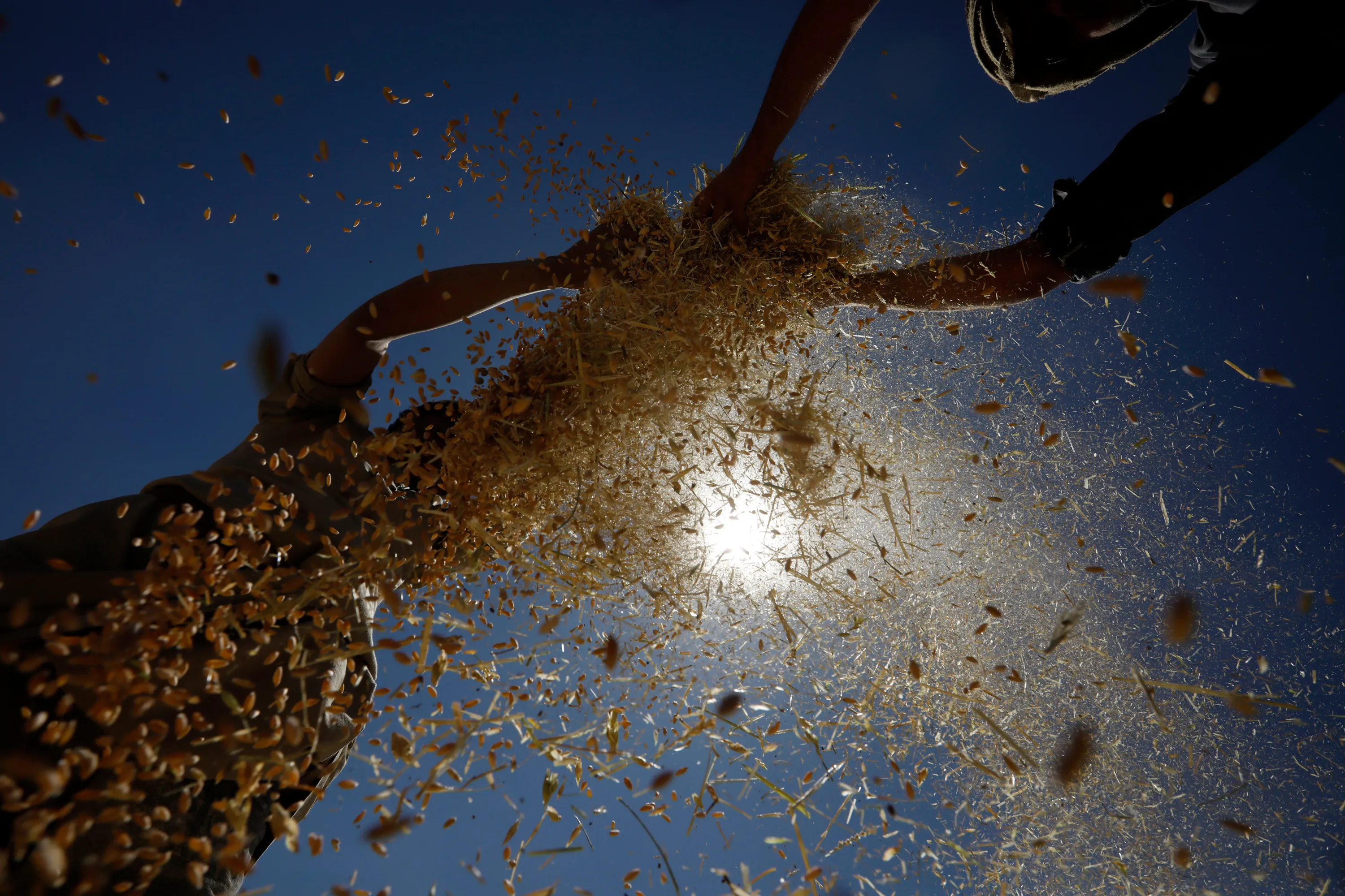 Farmers winnow wheat during harvest season in Sana'a, Yemen, 26 October 2020. According to reports, many Yemenis depend on agriculture industry for their livelihoods, with nearly 60 percent of the nations labour force working in the sector. (Photo by Yahya Arhab/EPA/EFE)