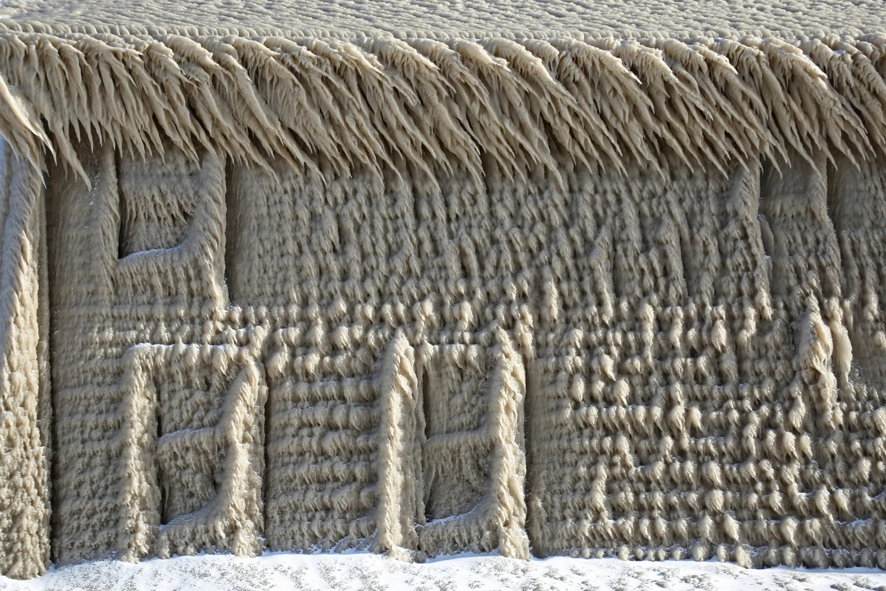 A house along Hoover Beach is covered by ice from high winds and from the waves from Lake Erie, Saturday, February 29, 2020, in Hamburg N.Y. Blowing snow has fallen around the state since Thursday, though the heaviest snowfall was concentrated in largely rural areas east of Lake Erie and Lake Ontario. (Photo by Jeffrey T. Barnes/AP Photo)