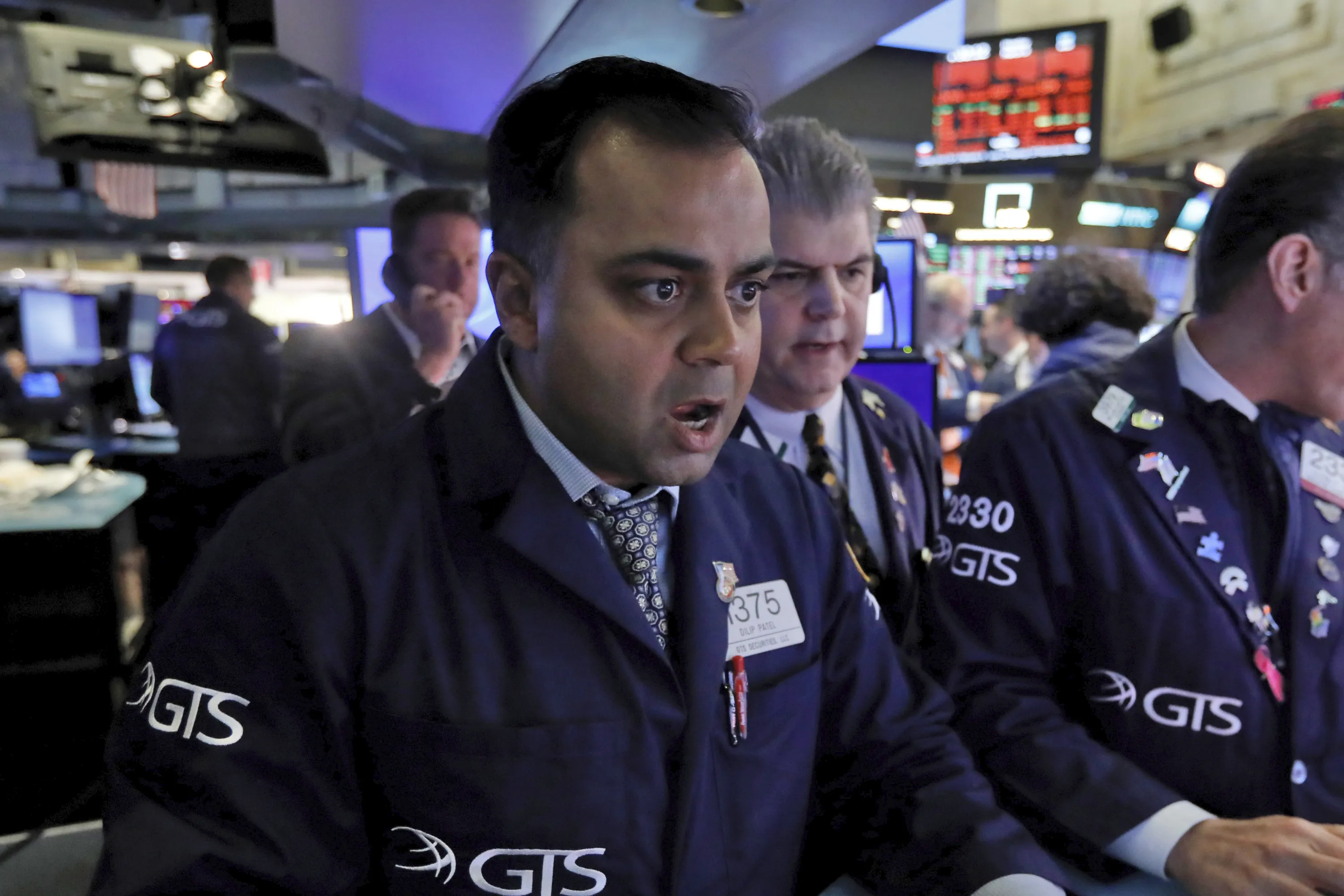 Specialist Dilip Patel, left, works at his post on the floor of the New York Stock Exchange, Monday, March 9, 2020. The Dow Jones Industrial Average sank 7.8%, its steepest drop since the financial crisis of 2008, as a free-fall in oil prices and worsening fears of fallout from the spreading coronavirus outbreak seize markets. (Photo by Richard Drew/AP Photo)