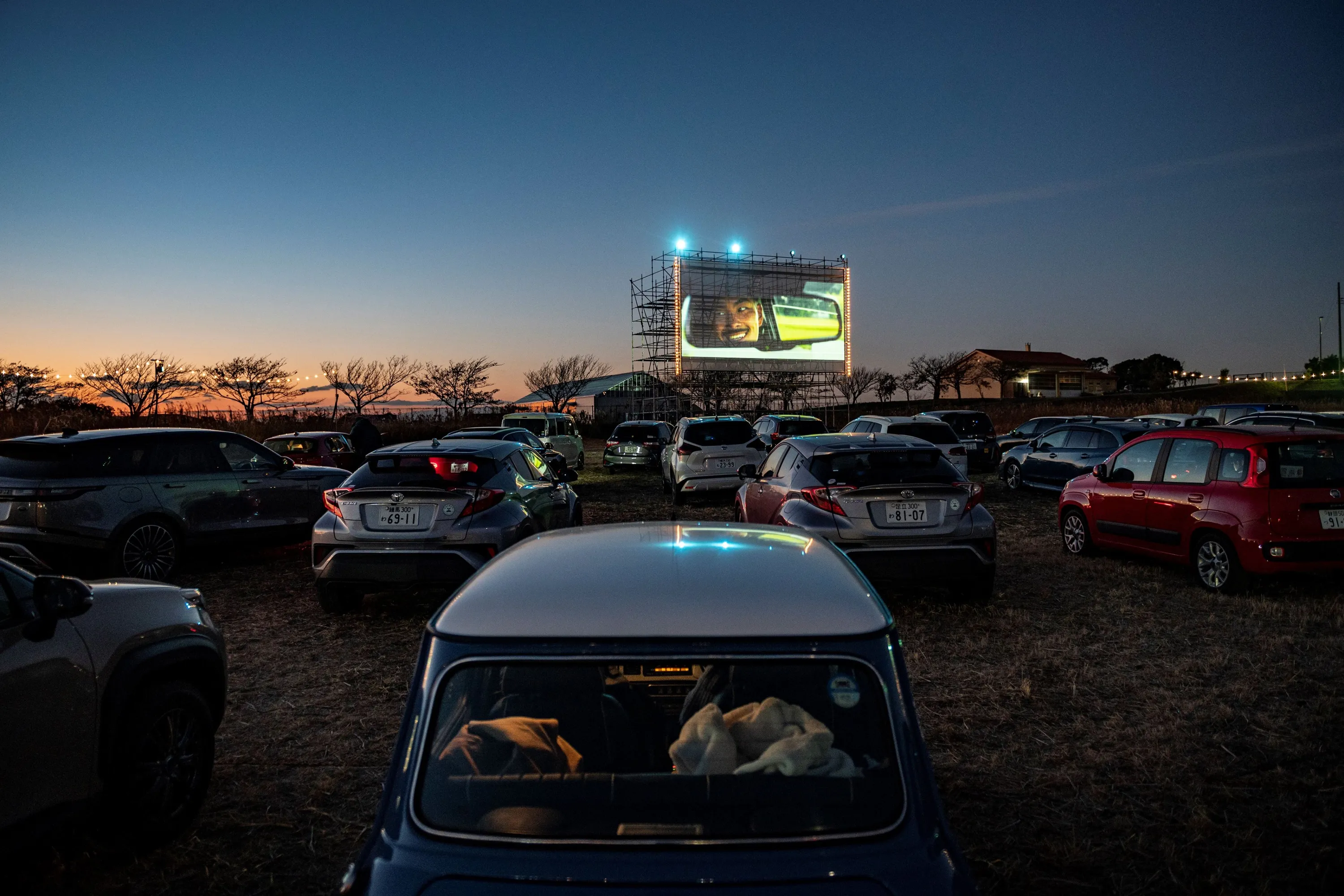Visitors sit in their cars at a drive-in cinema at Nagai Seaside Park in Yokosuka, Kanagawa prefecture, south of Tokyo, on December 26, 2020. (Photo by Philip Fong/AFP Photo)