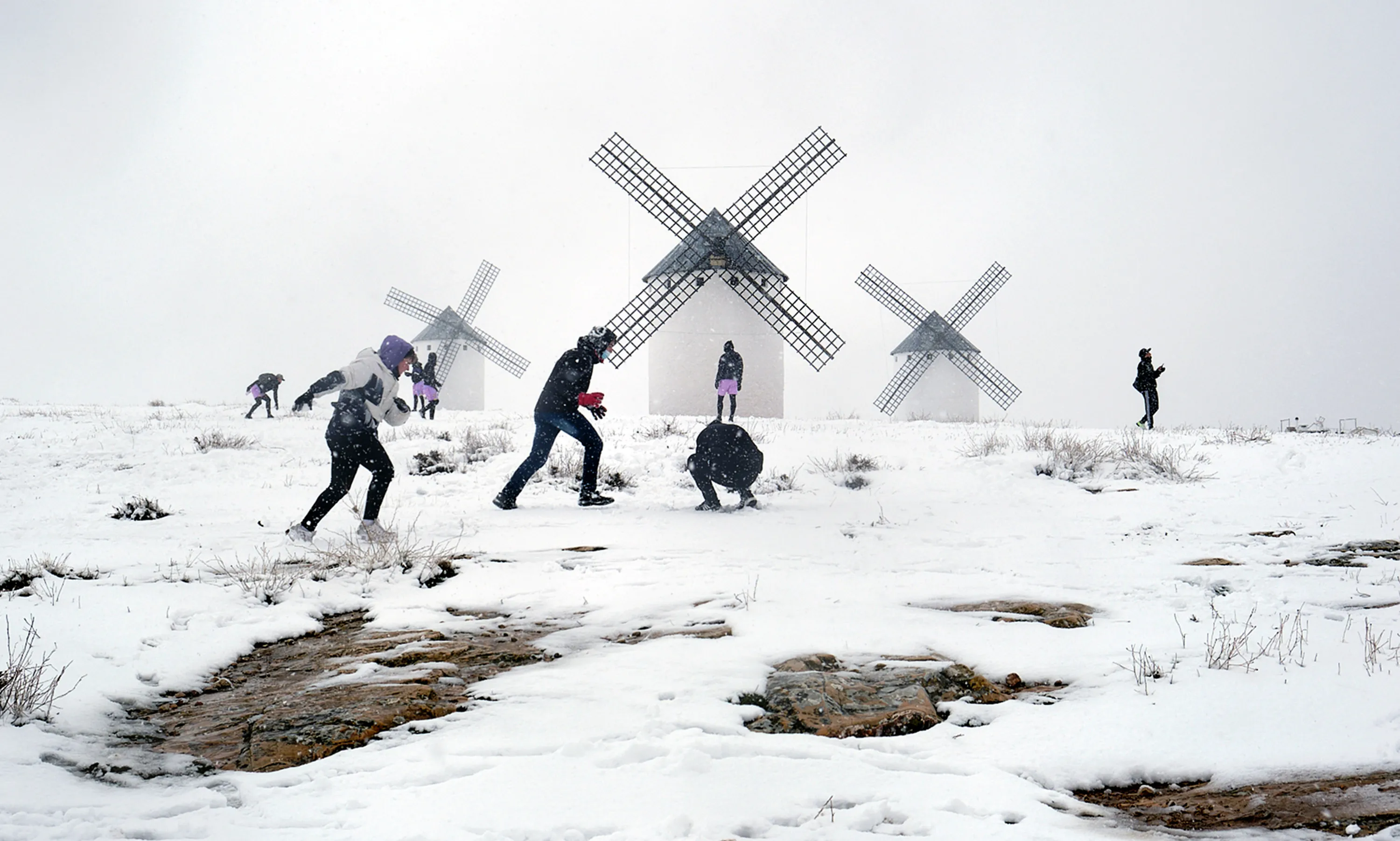 A heavy snowfall falls over Campo de Criptana, on January 7, 2021, in Castilla-La Mancha, Spain. Castilla-La Mancha has activated the Specific Plan for Risk due to Adverse Weather Events (Meteocam) from 6pm this Wednesday in its level 1 emergency phase, in anticipation of the snowstorm in the Autonomous Community. Storm Filomena has almost the whole of Spain on alert due to the risk of heavy snowfall in central and eastern Spain, strong winds and persistent rainfall, as well as a drop in temperatures, which will be below the usual levels for this period. (Photo by Rey Sotolongo/Europa Press via Getty Images)