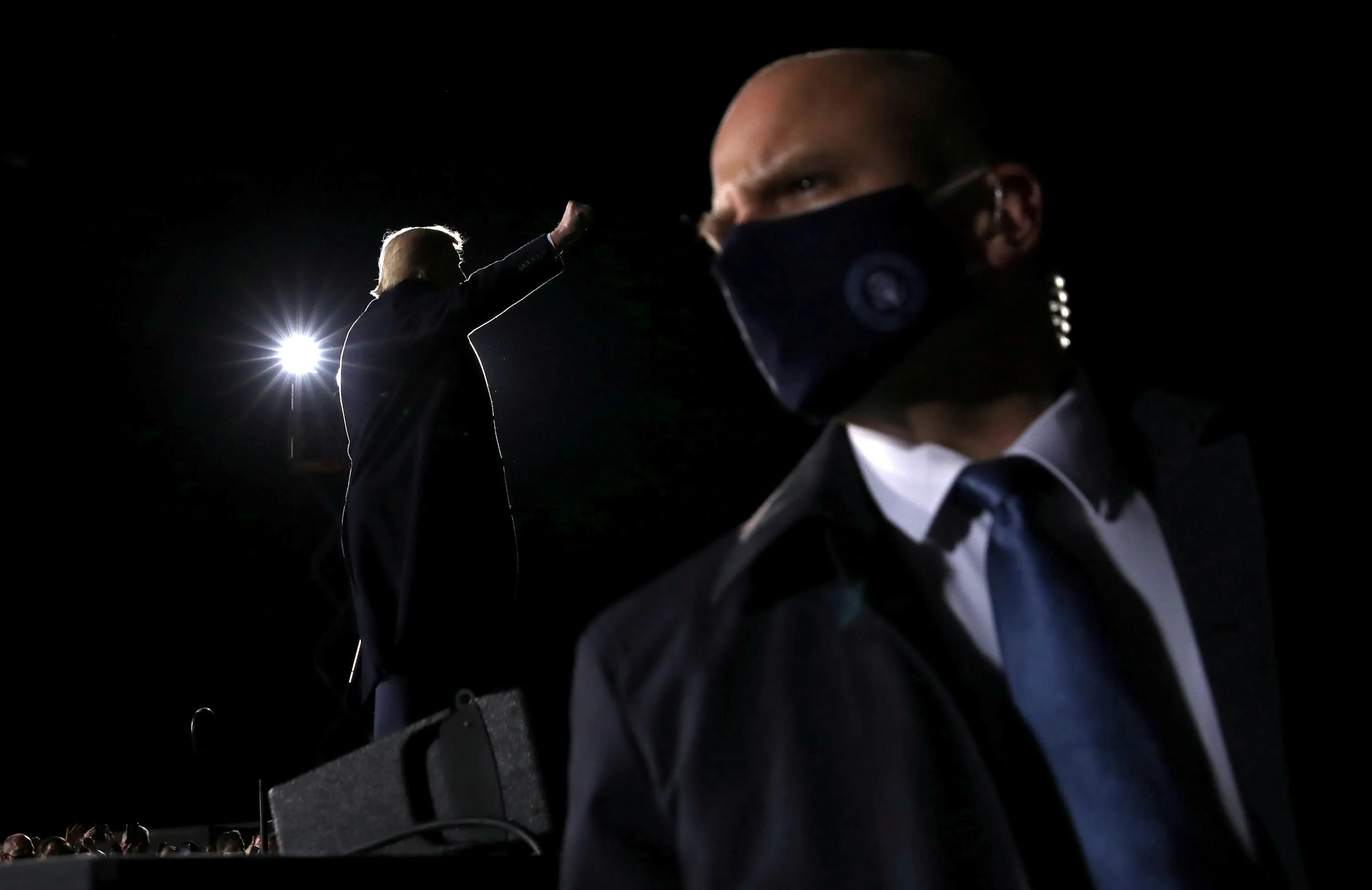 A member of security looks on as U.S. President Donald Trump addresses a campaign rally in Dalton, Georgia, U.S., on the eve of the run-off election to decide both of Georgia's Senate seats January 4, 2021. (Photo by Leah Millis/Reuters)