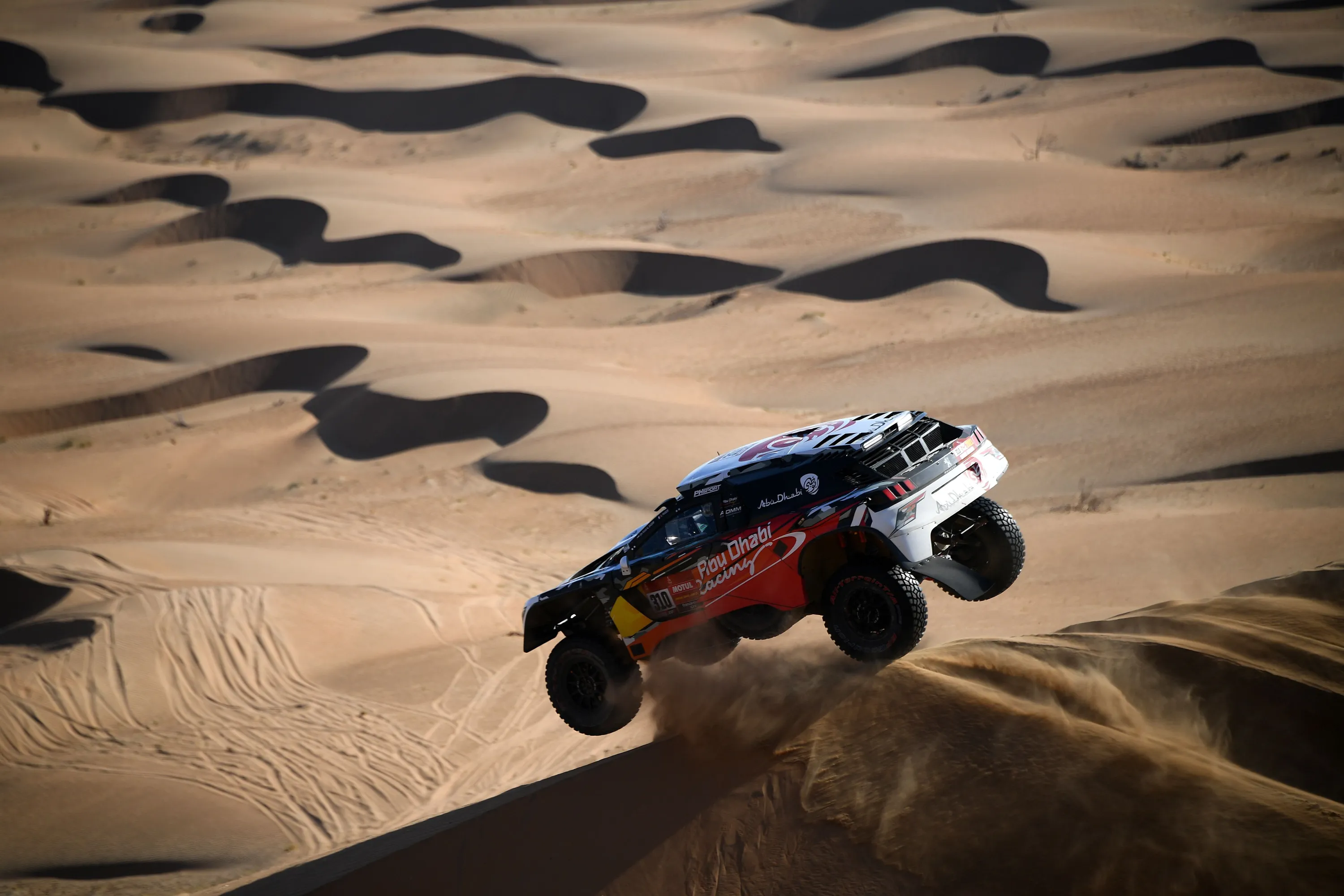 Peugeot's driver Khalid Sheikh al-Qassimi of Saudi Arabia and co-driver French Xavier Panseri compete during Stage 2 of the Dakar Rally 2021 between Bisha and Wadi Ad-Dawasir in Saudi Arabia, on January 4, 2021. (Photo by Franck Fife/AFP Photo)