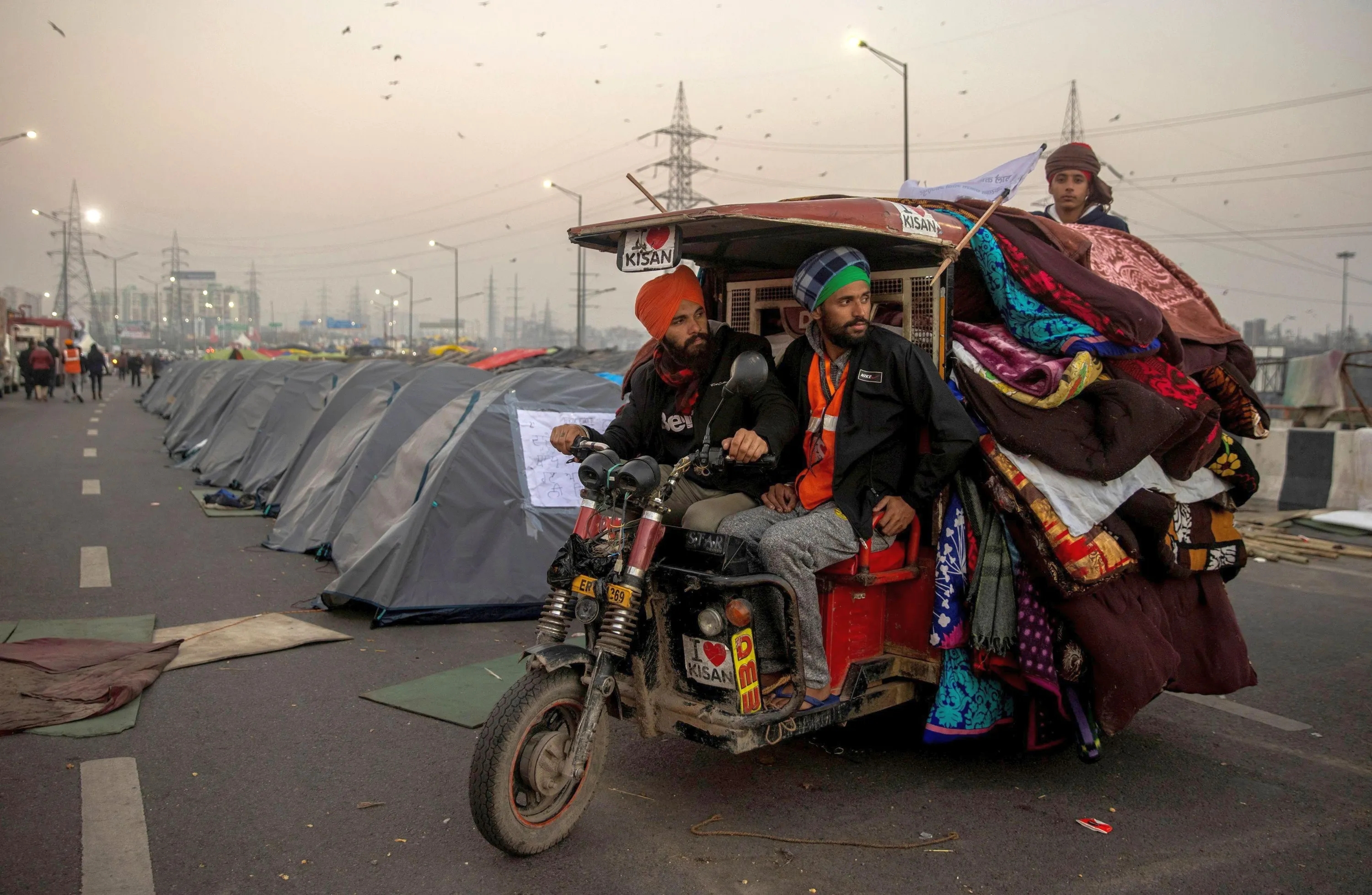 Farmers transport blankets and mattresses at the site of a protest against new farm laws, at the Delhi-Uttar Pradesh border in Ghaziabad, India, January 11, 2021. (Photo by Danish Siddiqui/Reuters)