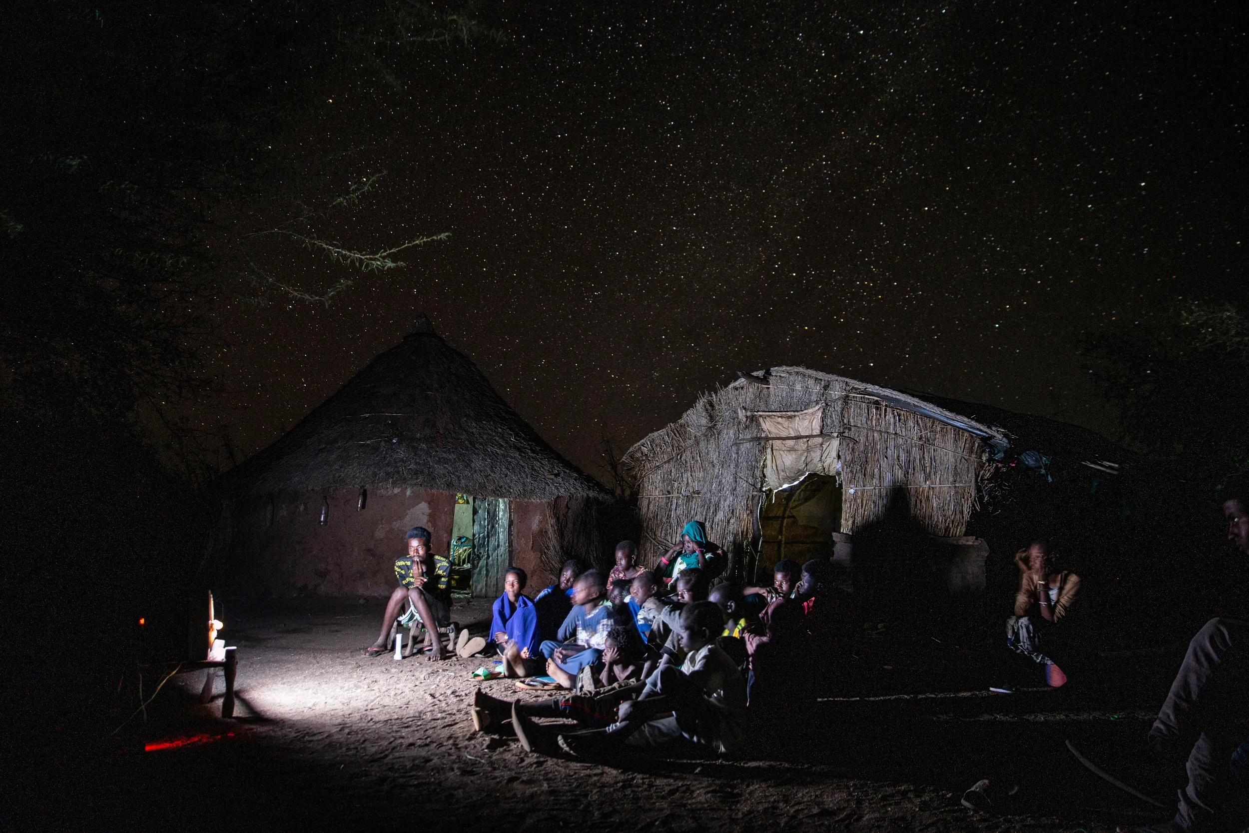 People watch the television during the only two hours of electricity per day in the Sudanese village of Um Rakuba, home to over 20,000 people, on January 7, 2021, in Um Rakuba, Sudan. Some 56,000 people have been displaced from Ethiopia to Sudan after nearly two months of the ongoing conflict in Ethiopia between Federal Government troops and the Tigray People's Liberation Front (TPLF). (Photo by Abdulmonam Eassa/Getty Images)