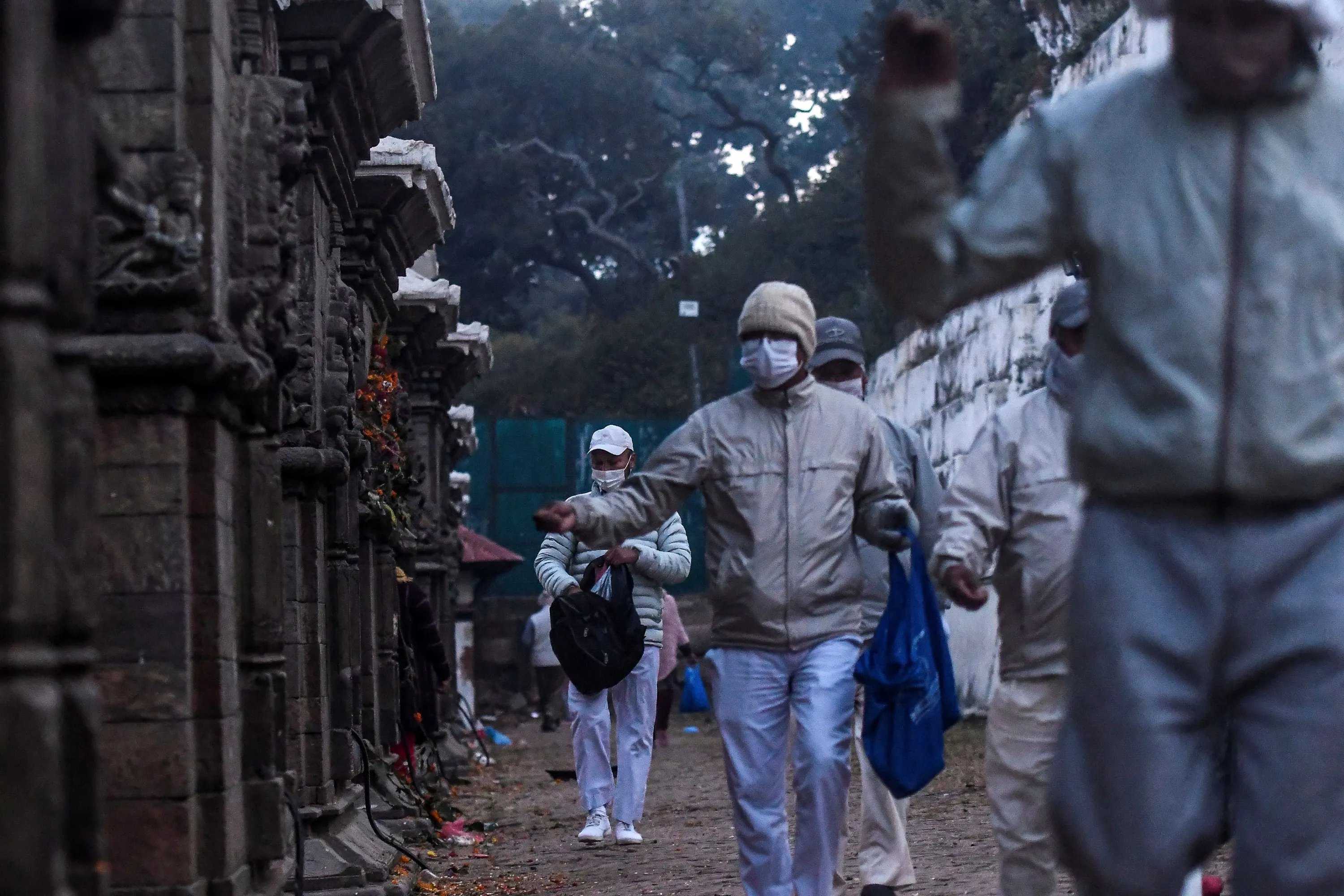 Hindu devotees plant seeds in honour of their deceased family members during the Bala Chaturdashi festival, at the Pashupatinath temple in Kathmandu on December 13, 2020. (Photo by Prakash Mathema/AFP Photo)