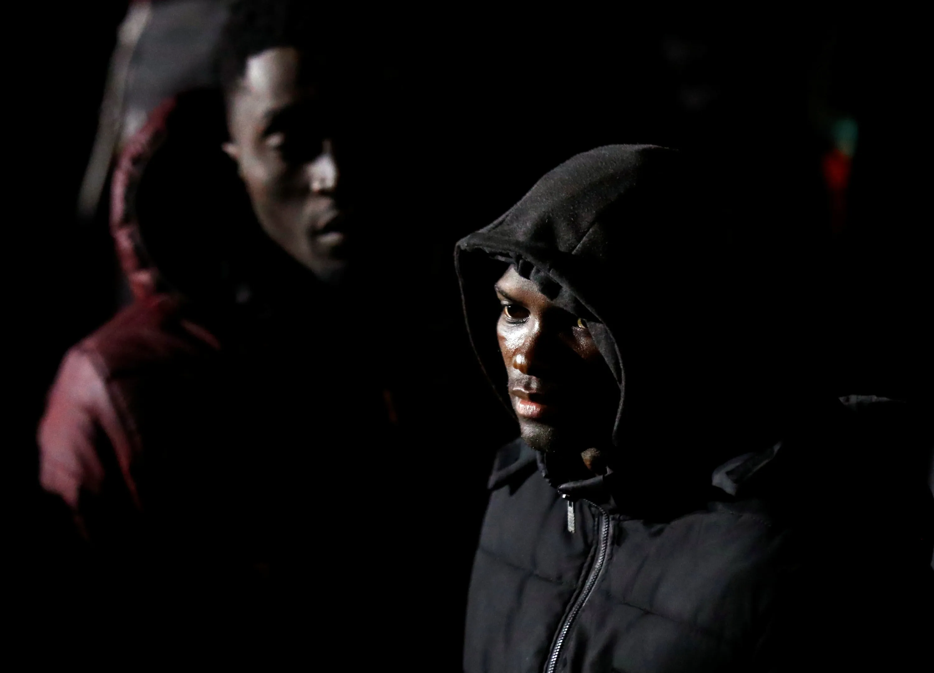 Migrants wait to disembark from a Spanish coast guard vessel, in the port of Arguineguin, in the south part of the island of Gran Canaria, Spain on January 21, 2021. (Photo by Borja Suarez/Reuters)