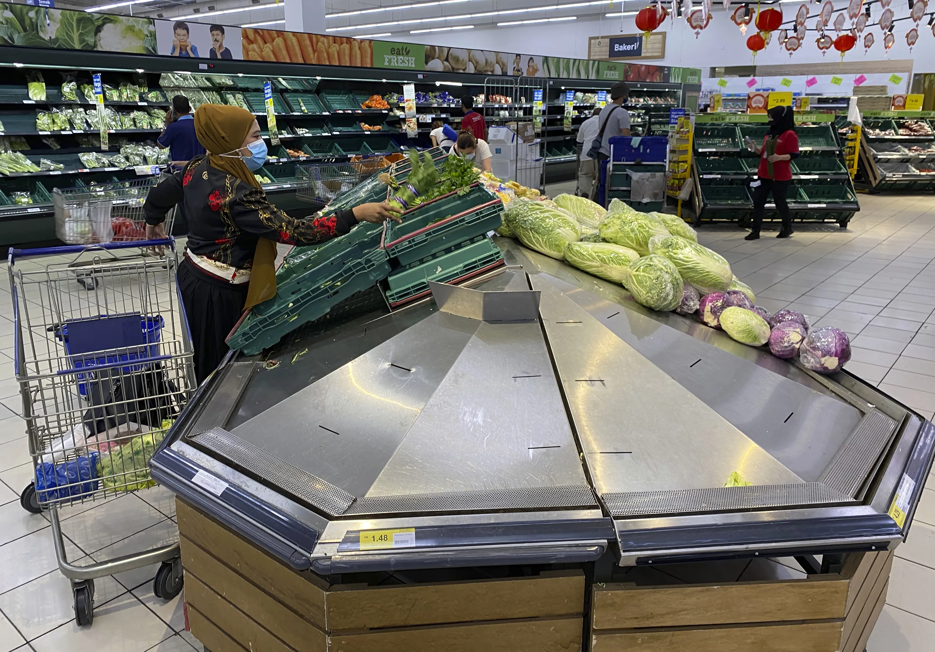 A woman shops for vegetables at a shopping mall in Kuala Lumpur, Malaysia, Tuesday, January 12, 2021. (Photo by Vincent Thian/AP Photo)