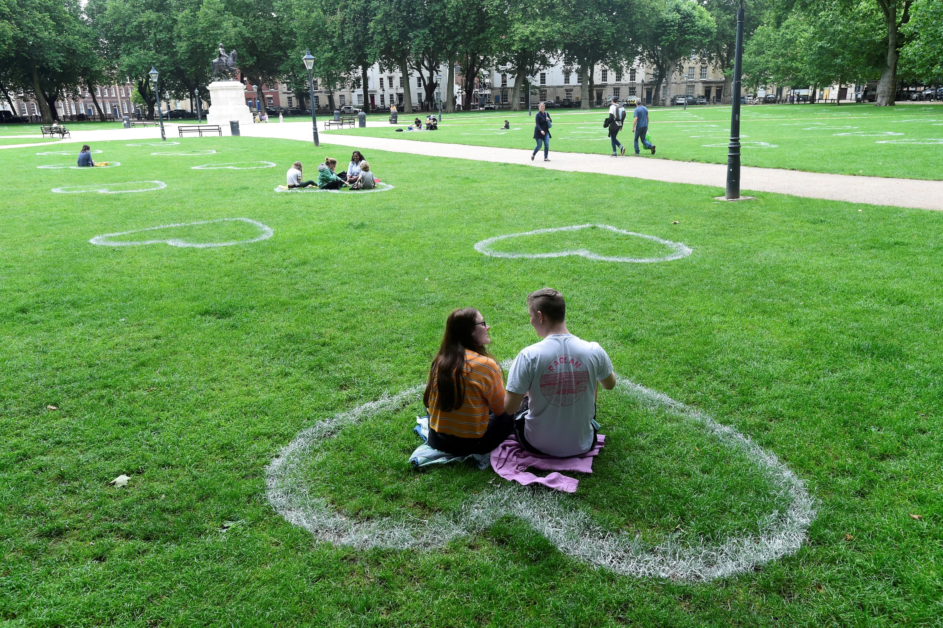 Hearts painted by a team of artists from Upfest are seen in the grass at Queen Square, following the coronavirus disease (COVID-19) outbreak, in Bristol, Britain on July 8, 2020. (Photo by Rebecca Naden/Reuters)