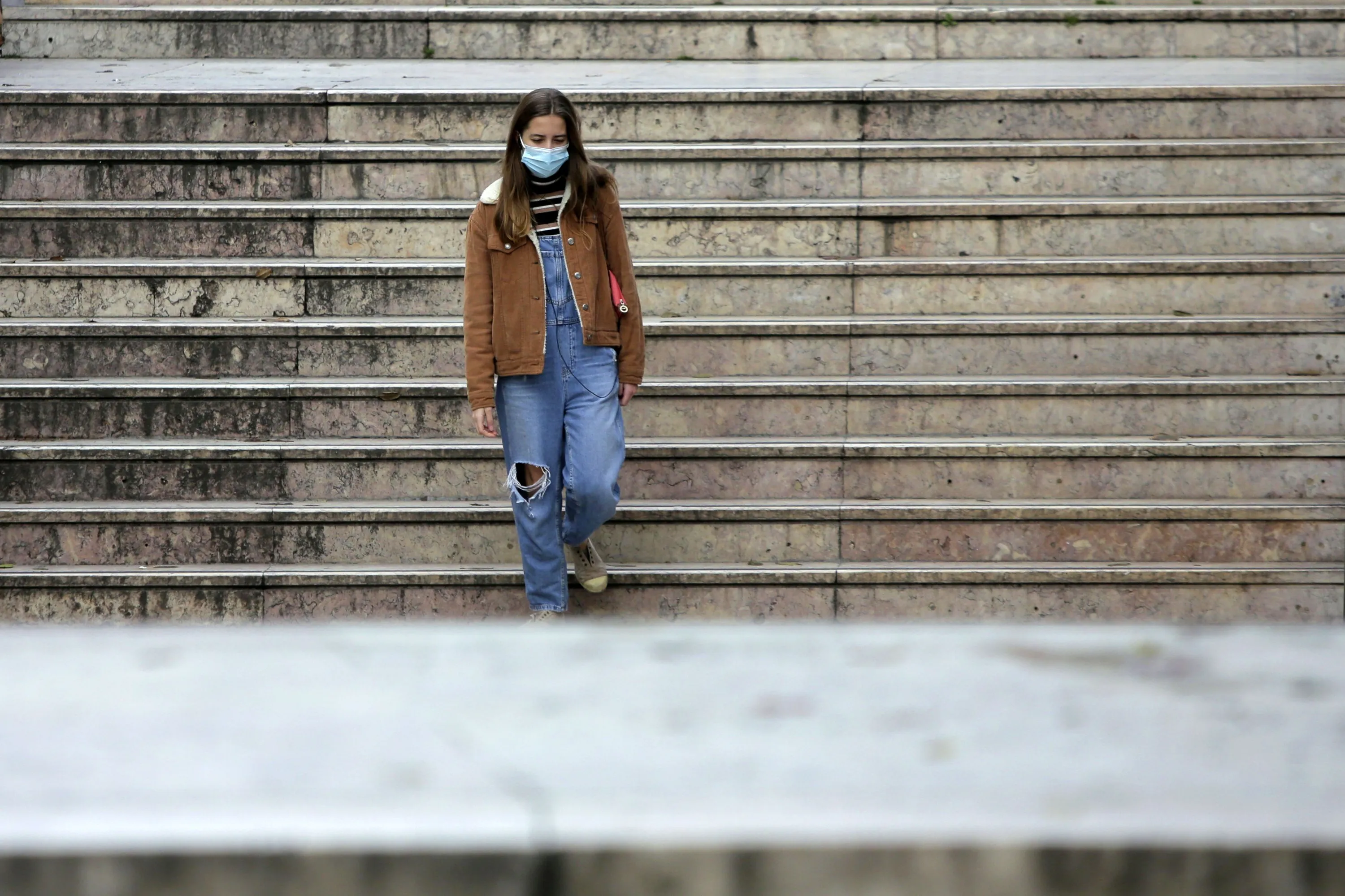 A young woman wearing a face mask enters a subway station in Lisbon, Friday, January 22, 2021. Portugal's COVID-19 surge is continuing unabated, with a new record of daily deaths, hospitalizations and patients in intensive care. (Photo by Armando Franca/AP Photo)
