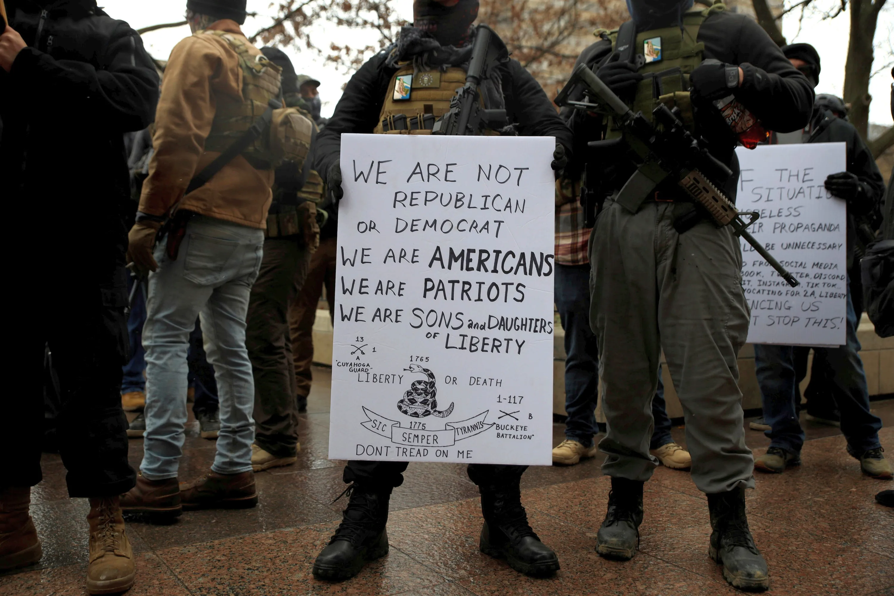 Militia groups gather to protect protesters as supporters of U.S. President Donald Trump protest against the election of President-elect Joe Biden, outside the Ohio State Capitol in Columbus, U.S. January 17, 2021. (Photo by Megan Jelinger/Reuters)