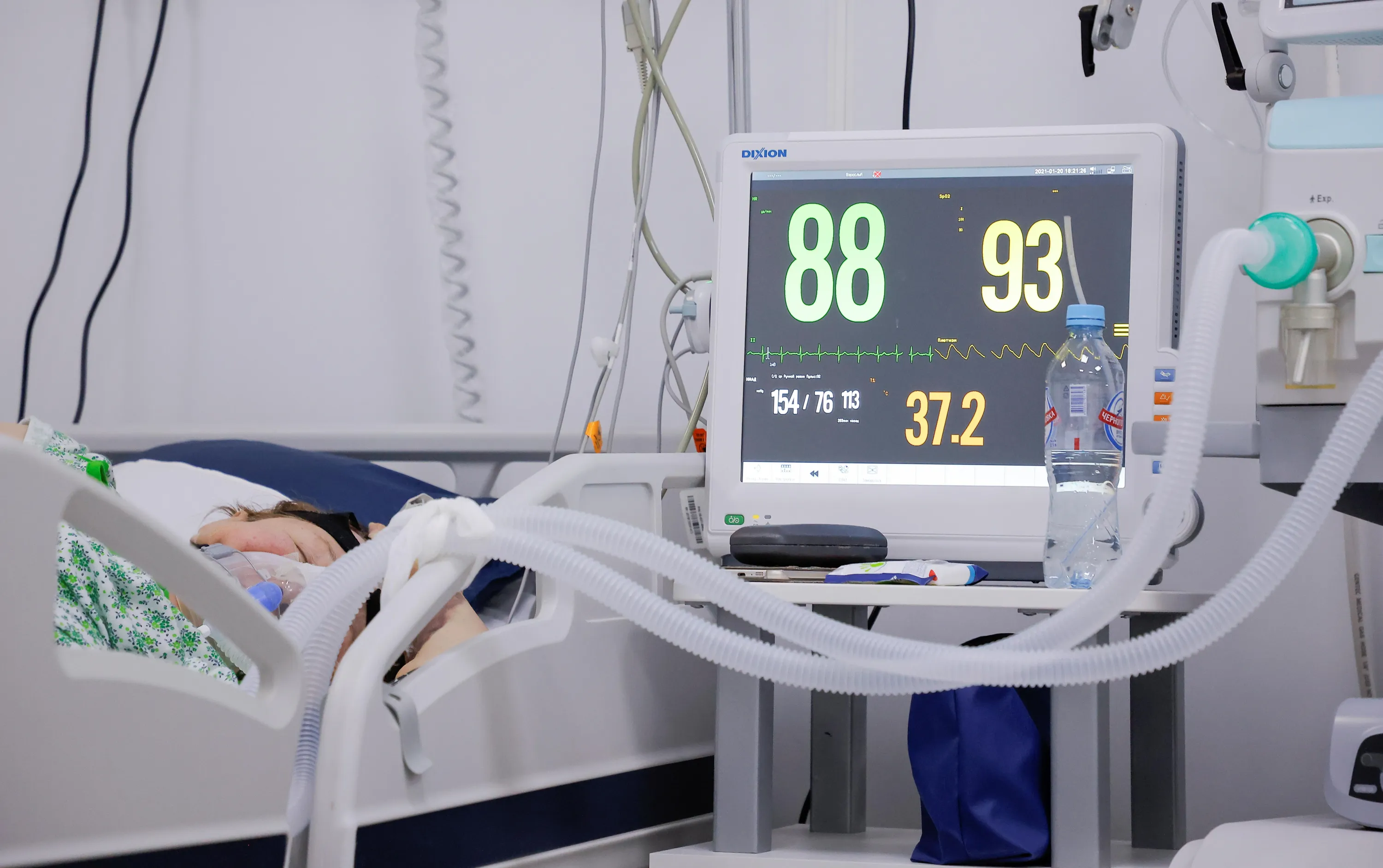 A patient receives medical treatment in a ward at the Krylatskoye Ice Palace, which was converted into a temporary hospital for people suffering from the coronavirus, in Moscow, Russia, January 20, 2021. (Photo by Maxim Shemetov/Reuters)