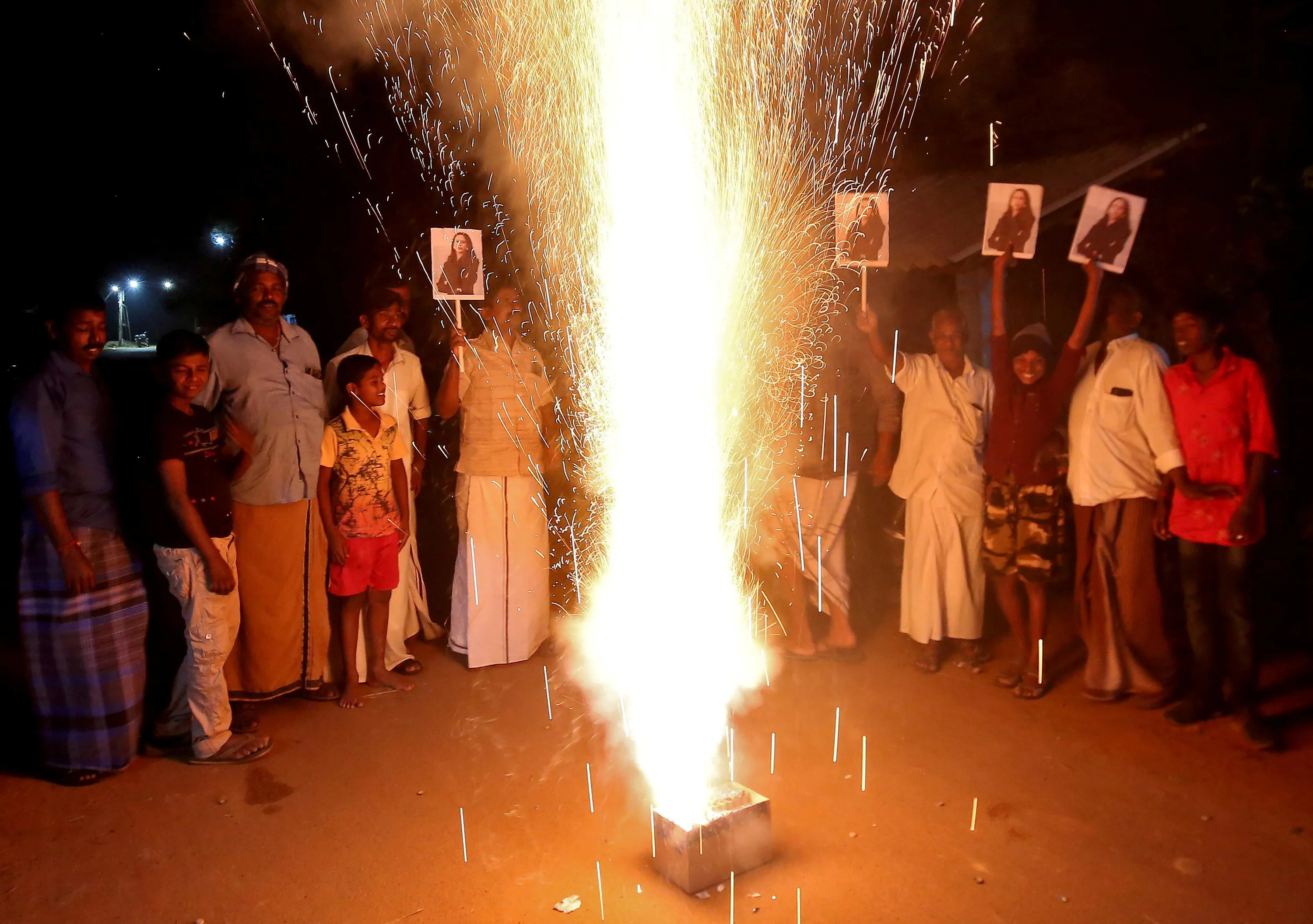 People hold posters of Kamala Harris to celebrate after she was sworn in as U.S. Vice President during the inauguration of Joe Biden as the 46th President of the United States, in the village of Thulasendrapuram, where Harris' maternal grandfather was born and grew up, in Tamil Nadu state, India, January 20, 2021. (Photo by P. Ravikumar/Reuters)