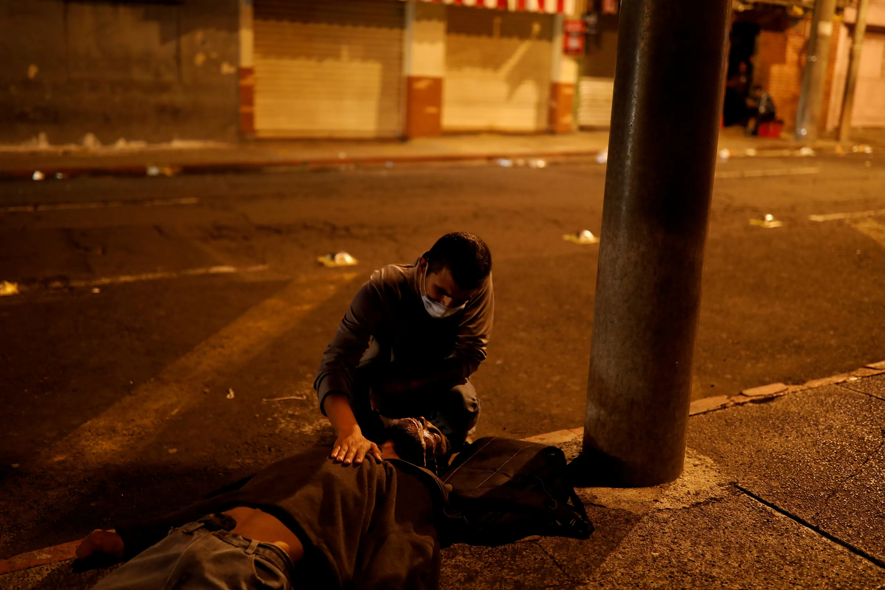A man helps a patient who was beaten by unknown assailants after leaving the San Juan de Dios hospital, as the coronavirus disease (COVID-19) outbreak continues, in Guatemala City, Guatemala, July 15, 2020. (Photo by Luis Echeverria/Reuters)