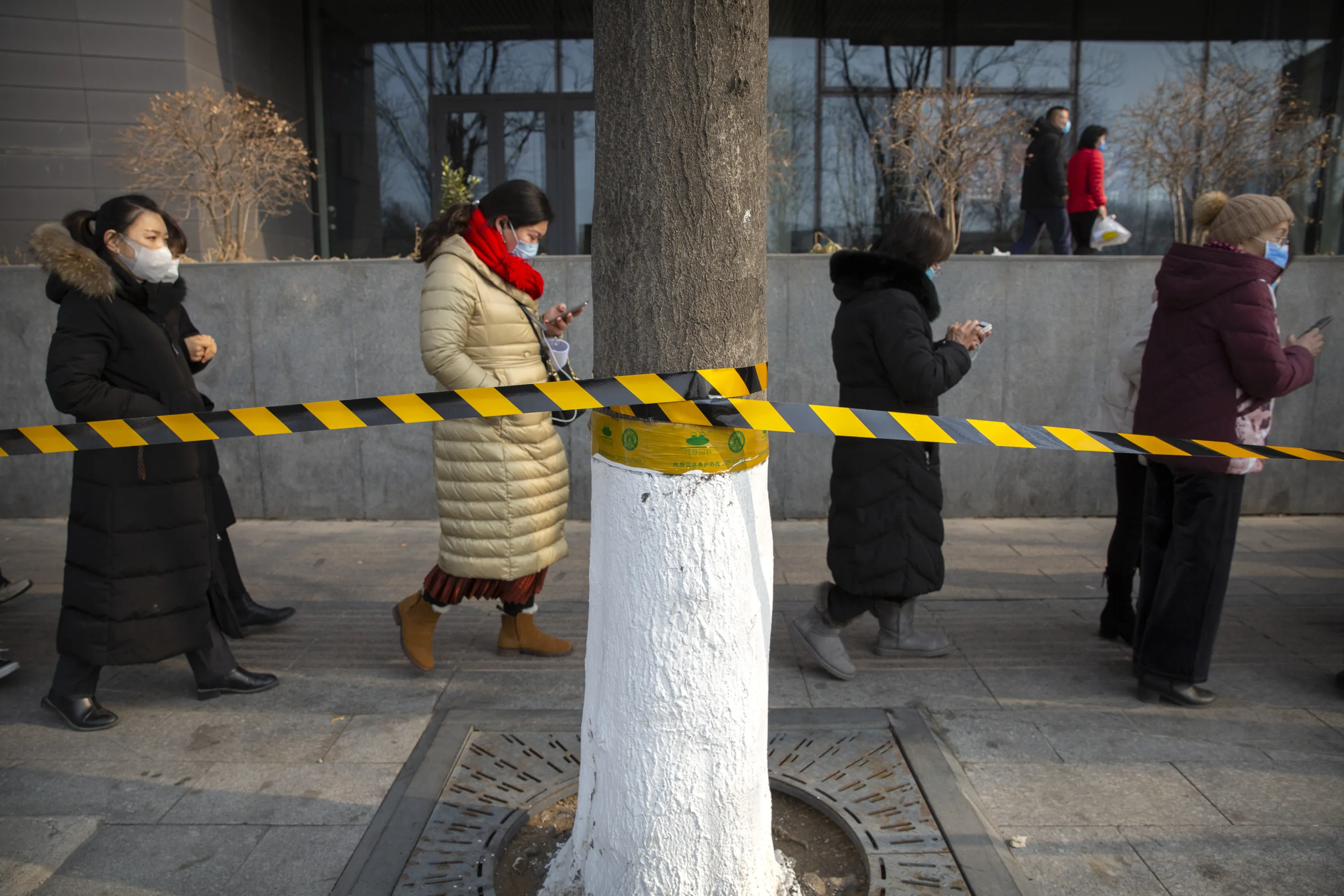 People wearing face masks to protect against the spread of the coronavirus line up for mass COVID-19 testing in a central district of Beijing, Friday, January 22, 2021. Beijing has ordered fresh rounds of coronavirus testing for about 2 million people in the downtown area following new cases in the Chinese capital. (Photo by Mark Schiefelbein/AP Photo)